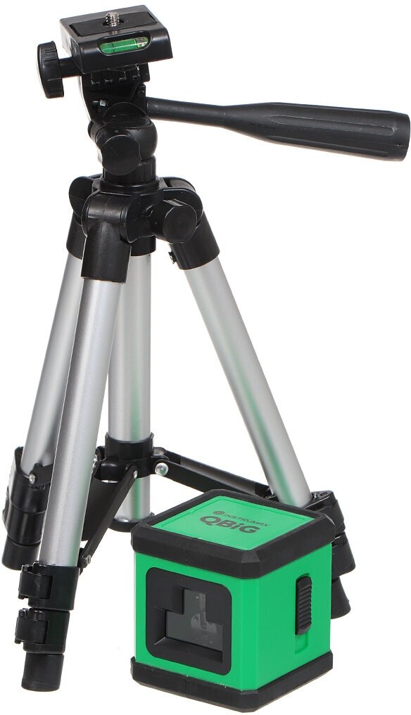 | Плюсы: | Малые размеры, зеленый луч лазера, минимум настроек, штатив в комплекте. На площадке штатива есть простой уровень. При неправильной установке лучи начинают мигать. |