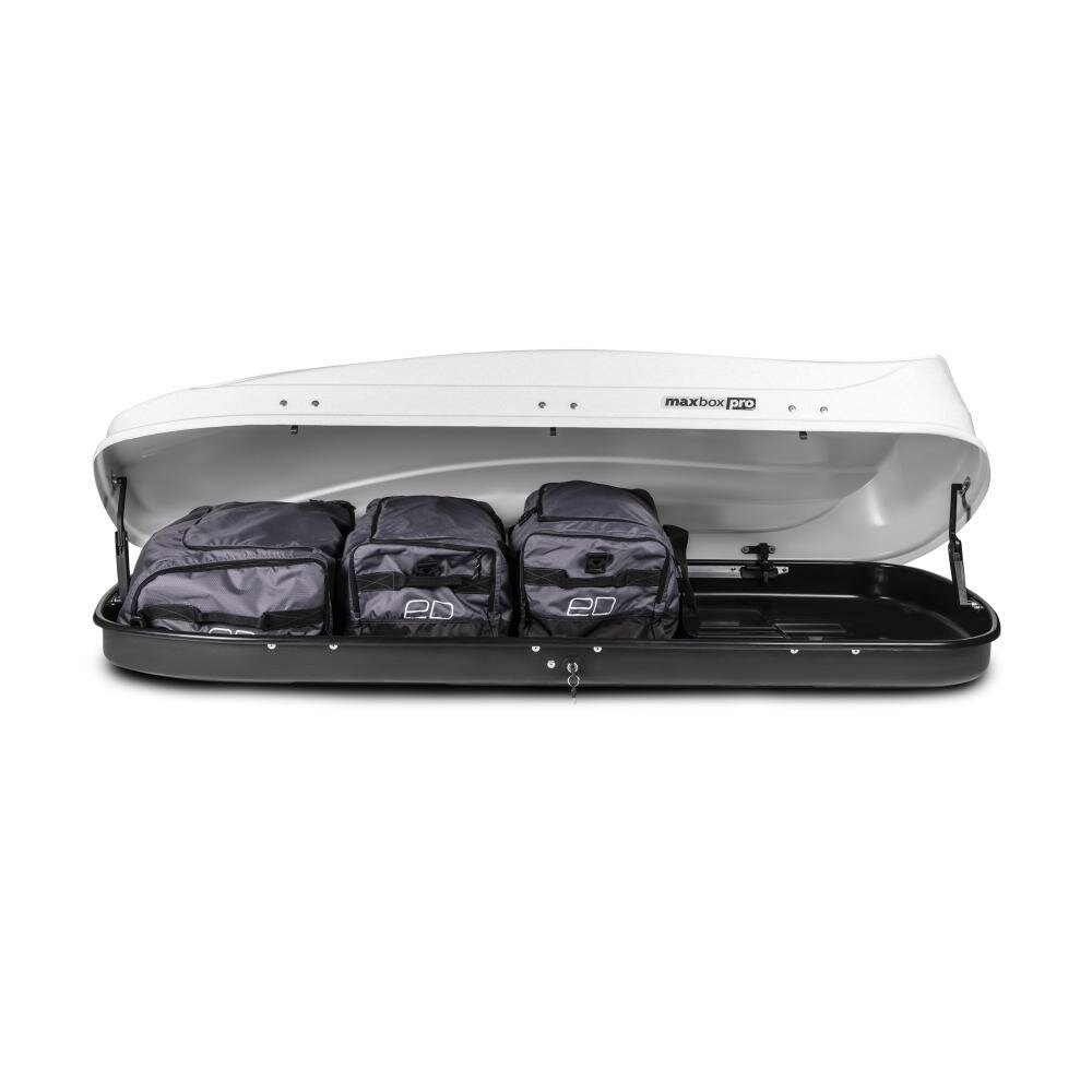 Бокс на крышу MaxBox Pro 520л, белый глянец,196х80х43, усилители дна, двусторонний, арт:MBP-520-WG-1