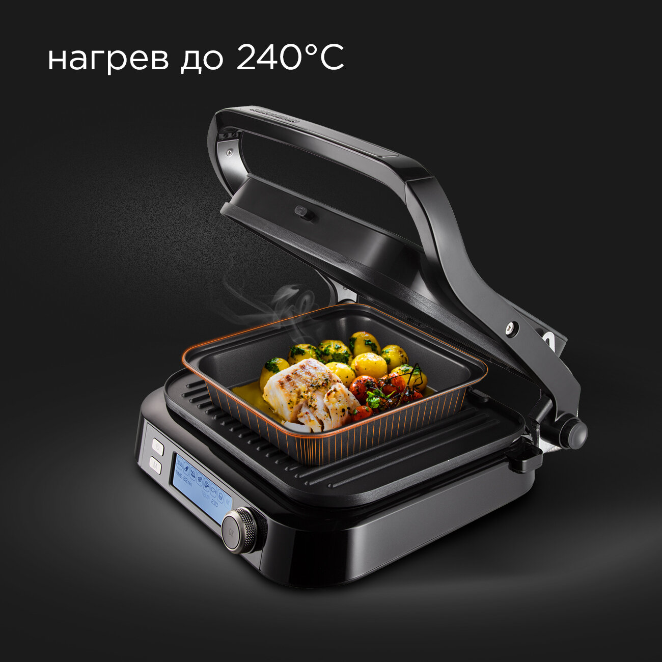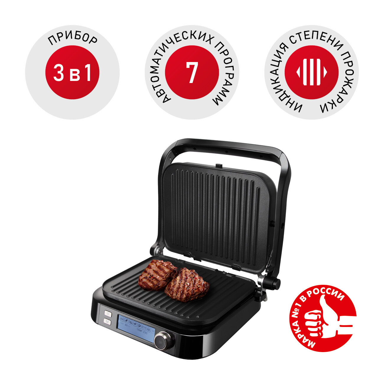 | Дополнительная информация | Диапазон температур нагревадо 70-230°С; Максимальный угол открытия крышки- 180°; Защита от перегрева , Регулировка температуры - есть, Дисплей -ЖК, с подсветкой; Регулировка высоты ветодиодный, |