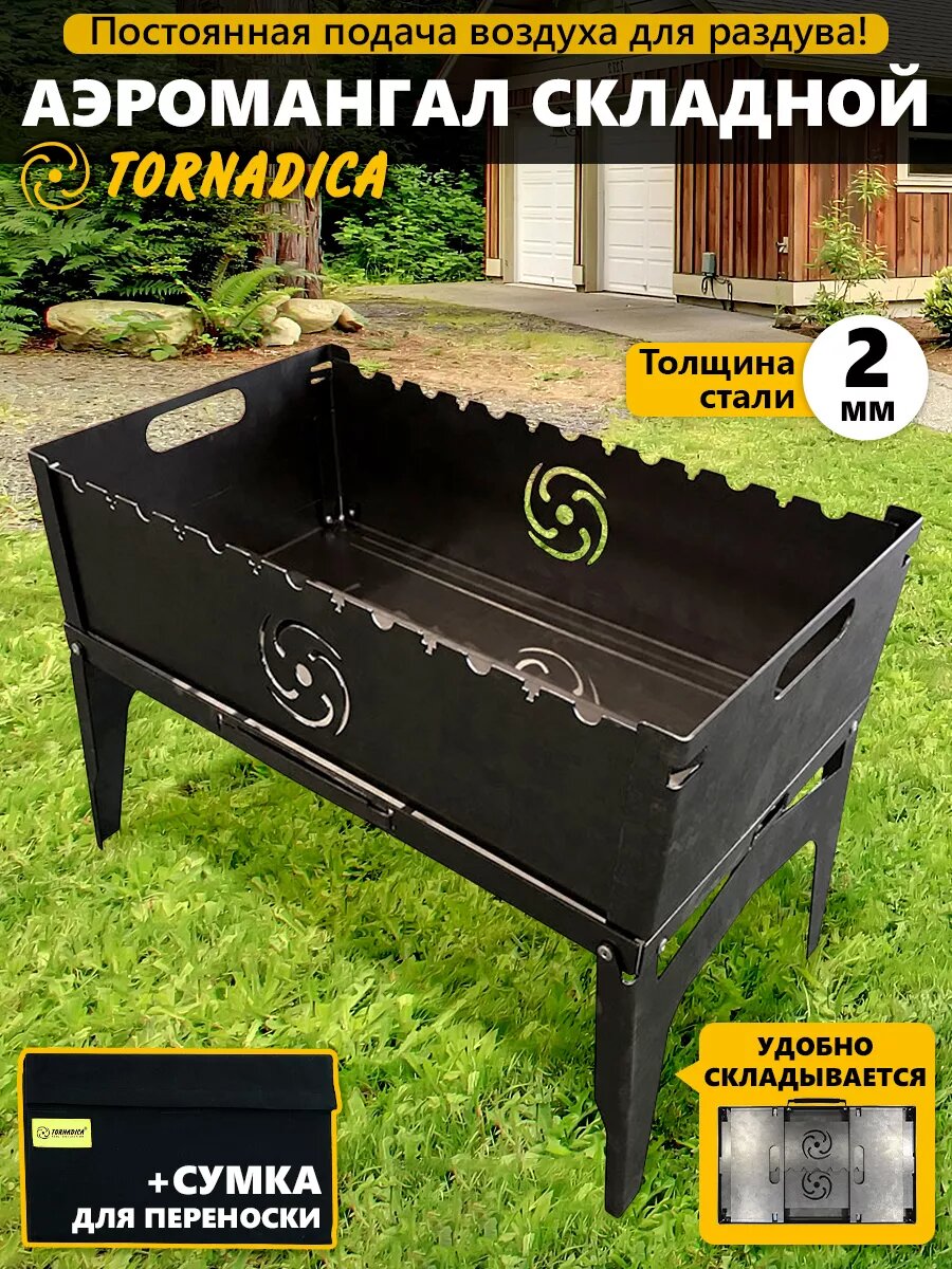 СохранитьМангал складной Торнадика с сумкой из высокопрочной стали с аэро тоннелем в днище мангала (Tornadica) интересное: