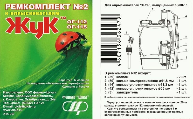 Ремкомплект №2, к опрыскивателям ОГ-112, ОГ-115, «Жук»(2 шт.) интересное: