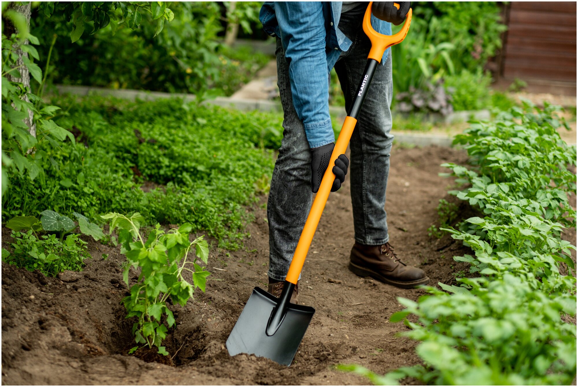 Лопата штыковая Plantic Terra Plus 11011-01 для копки земли, с удлиненным черенком, эргономичной ручкой в форме буквы D, черная/оранжевая