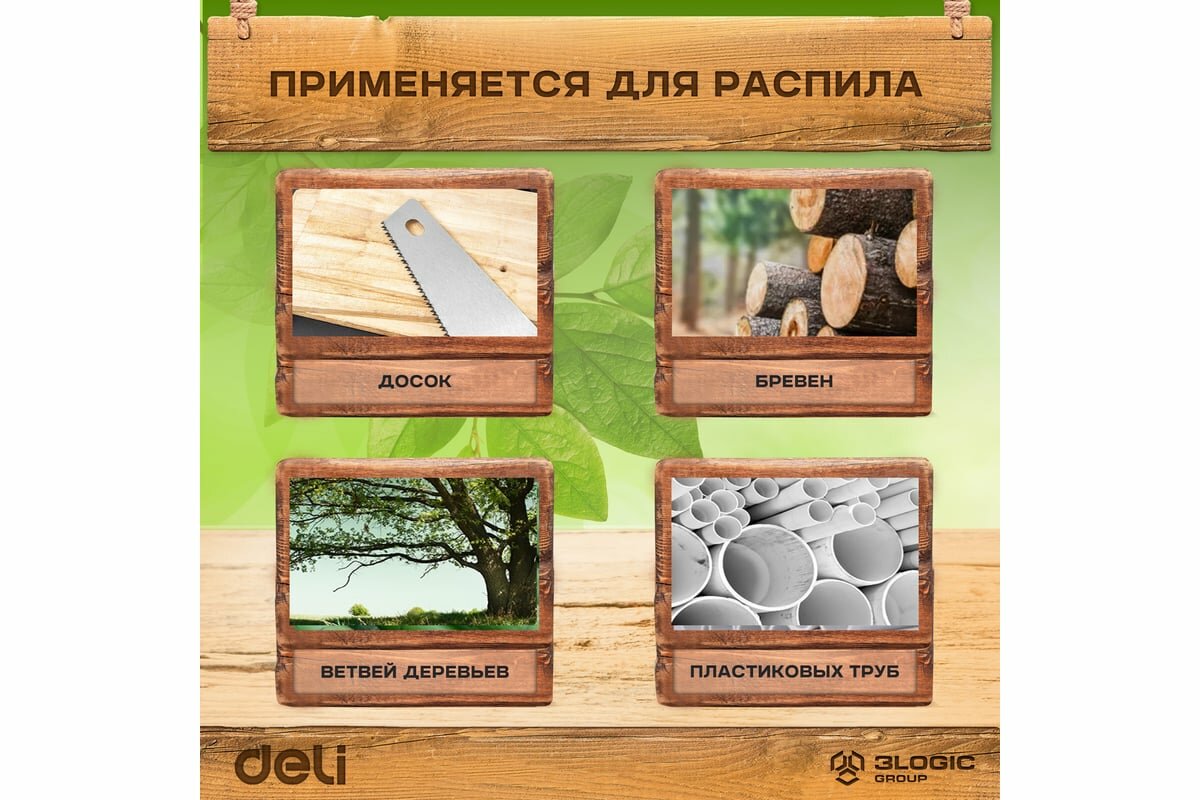 Садовая пила (ножовка) удлиненная по дереву Deli DL580933 330мм (7 зубьев на дюйм, 3D заточка, обрезиненная ручка, двухрядное распределение зубцов)