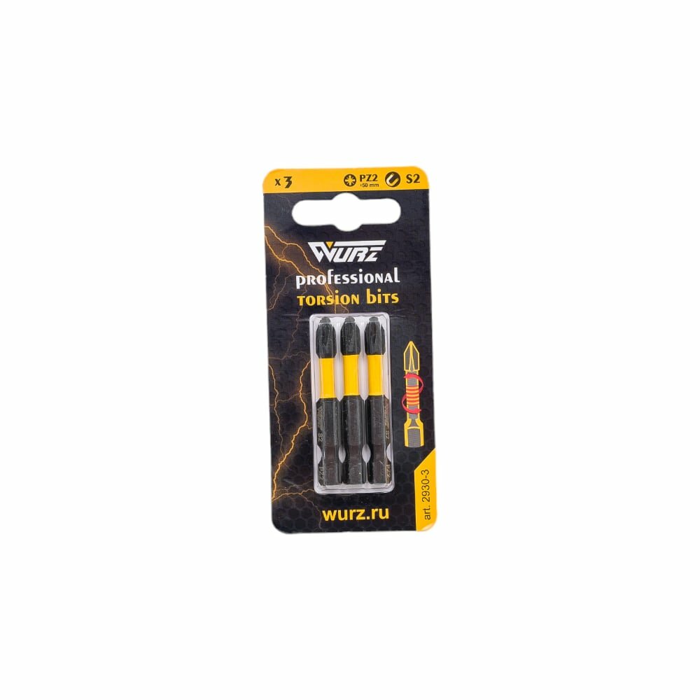 Бита торсионная магнитная PZ2, 50 мм, блистер, 3 шт WURZ 2930-3