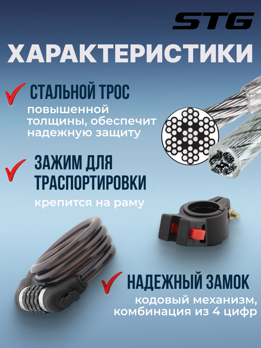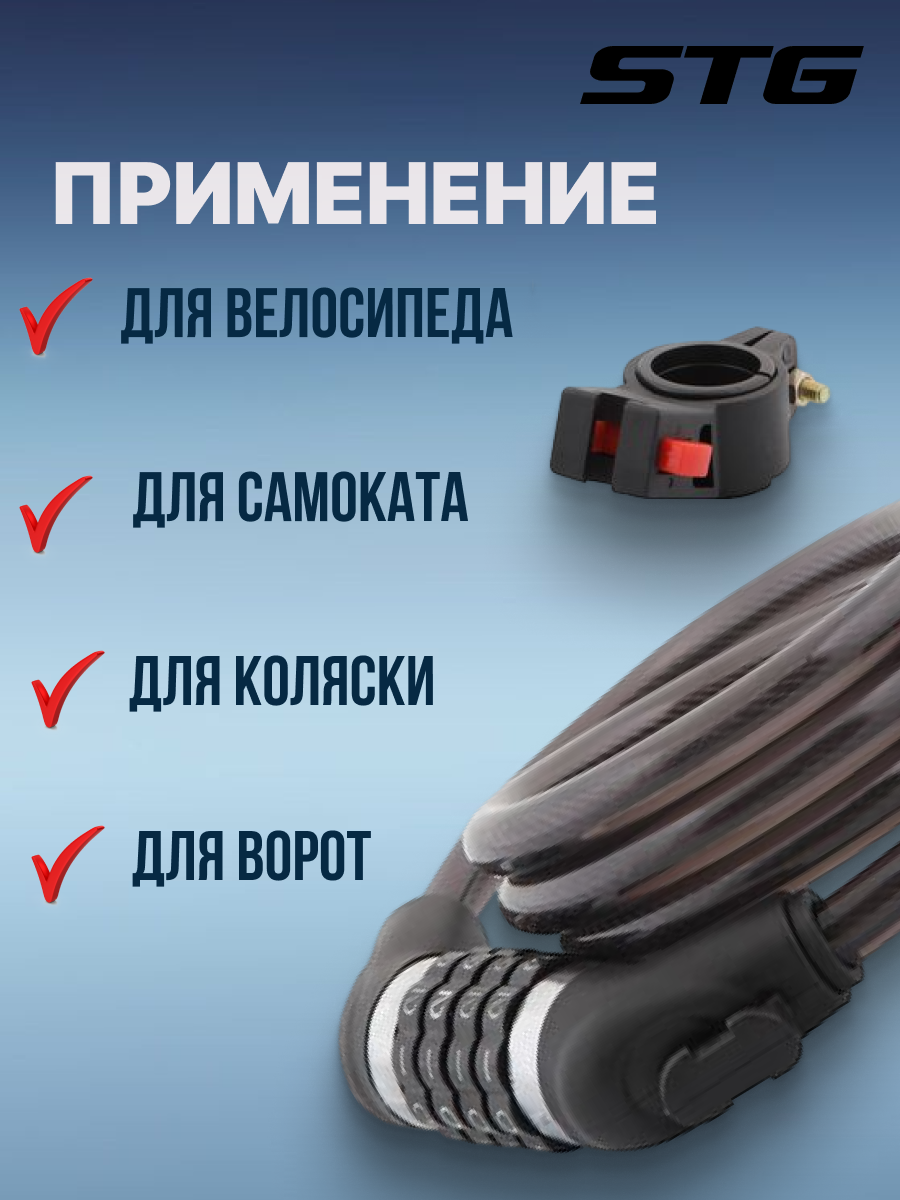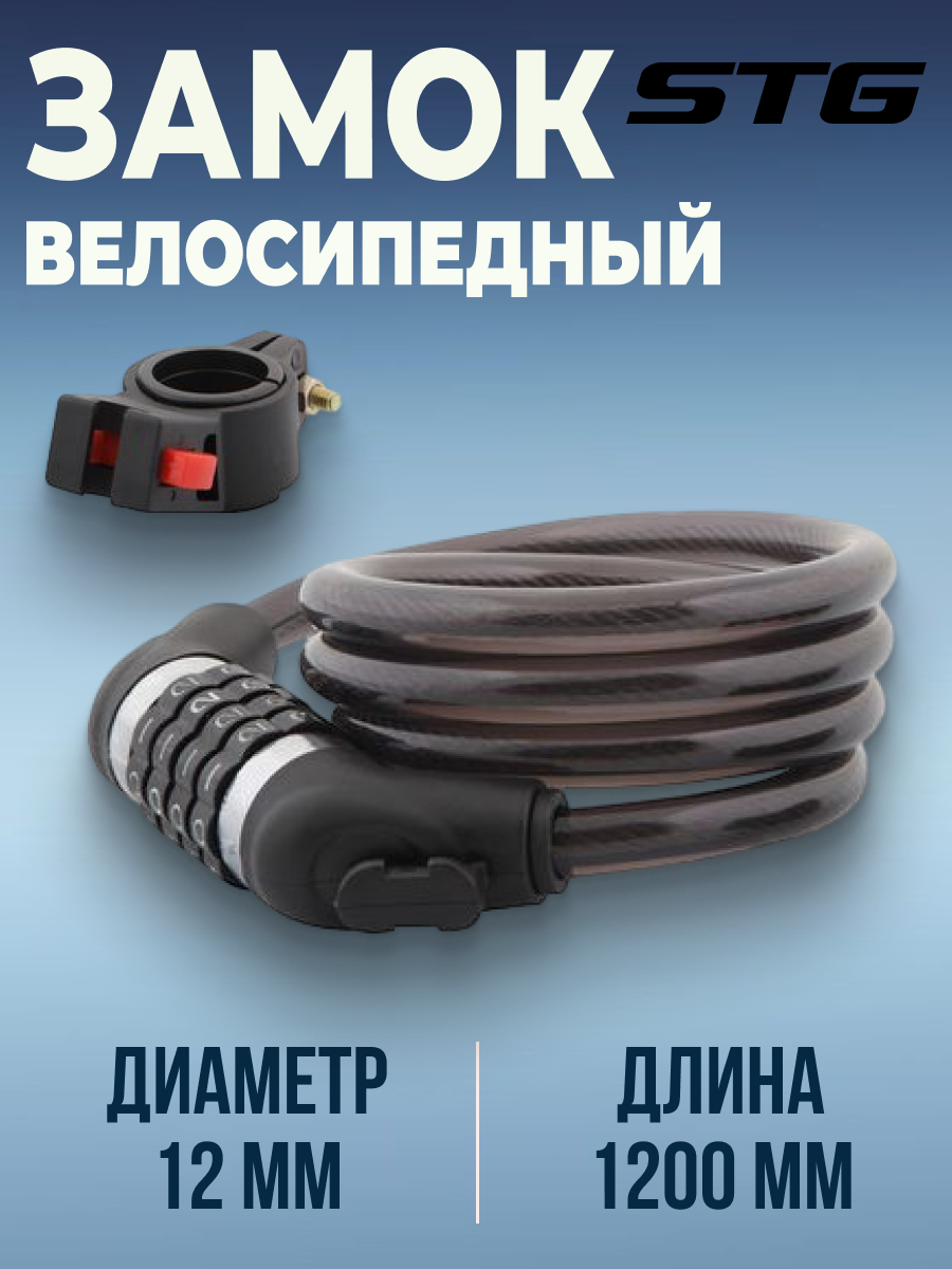 Замок велосипедный Stg , трос спиральный, кодовый диам.12х120см