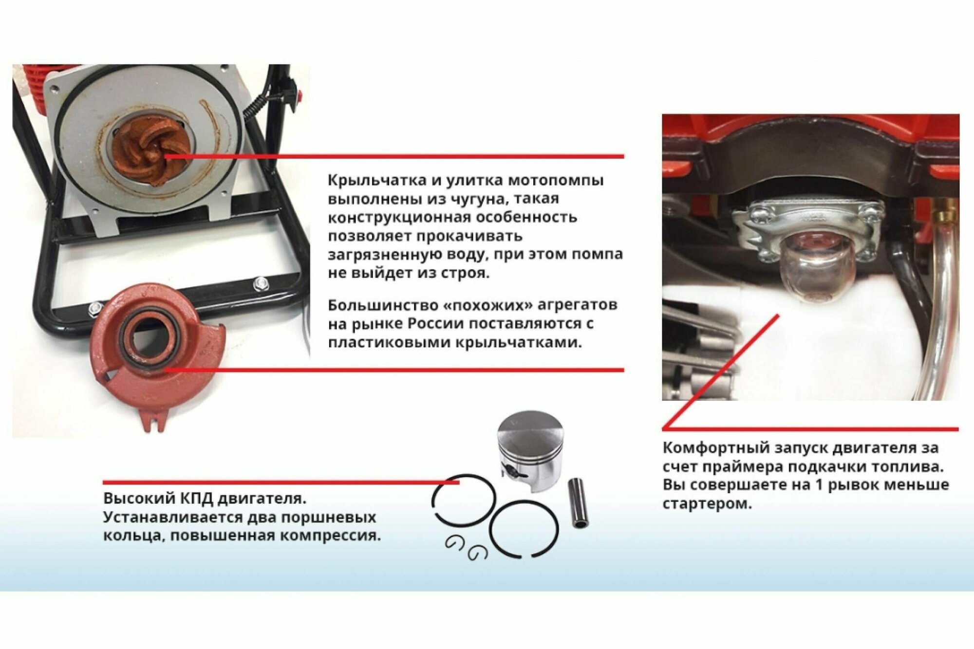 огонь , а не помпа . оснащение вроде хорошее . из минусов -громкая качал воду с пруда на даче, 2 метра глубины хорошо качает . летом с колодца для полива теплиц качал еще .норм все. |