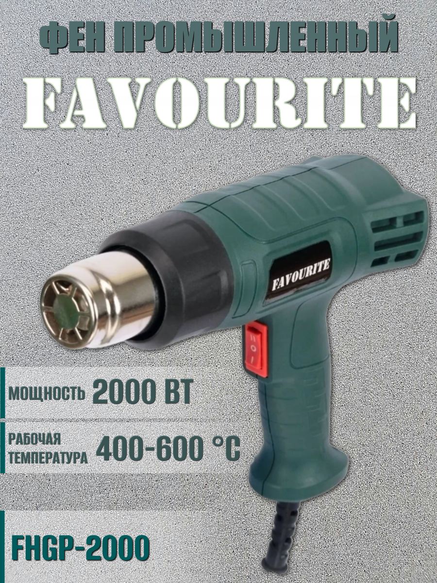 Favourite Фен промышленный 2000 Вт 400-600 С 300-500 л-мин 2 режима работы Fhgp 2000 .