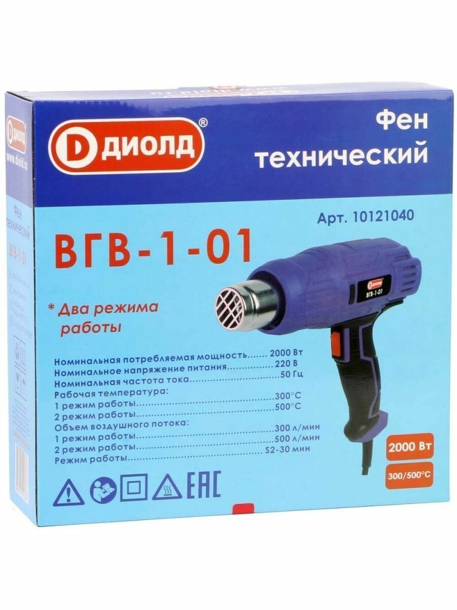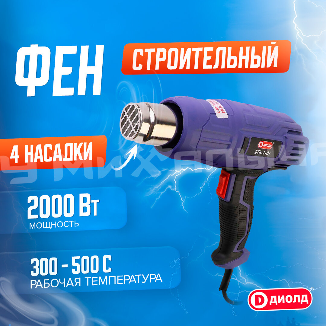 Строительный фен диолд ВГВ-1-01 10121040, 2000 Вт фиолетовый интересное: