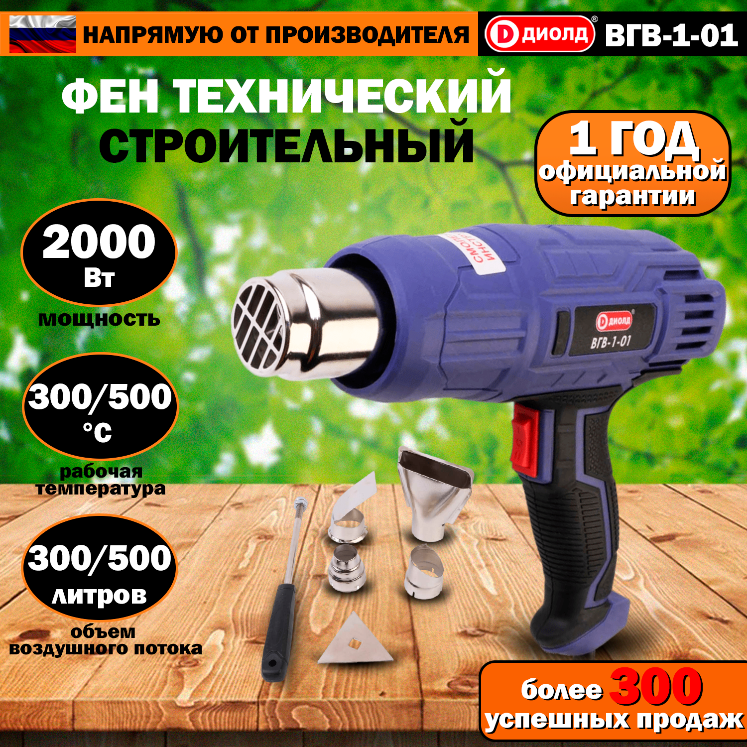 Электрический строительный фен диолд ВГВ - 1-01