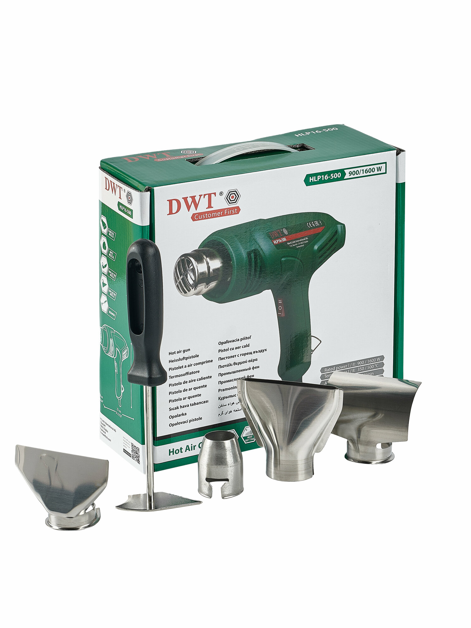 Фен технический DWT HLP16-500, 900/1600Вт, 350/500 C, 300/500л/мин,термозащита, коробка.