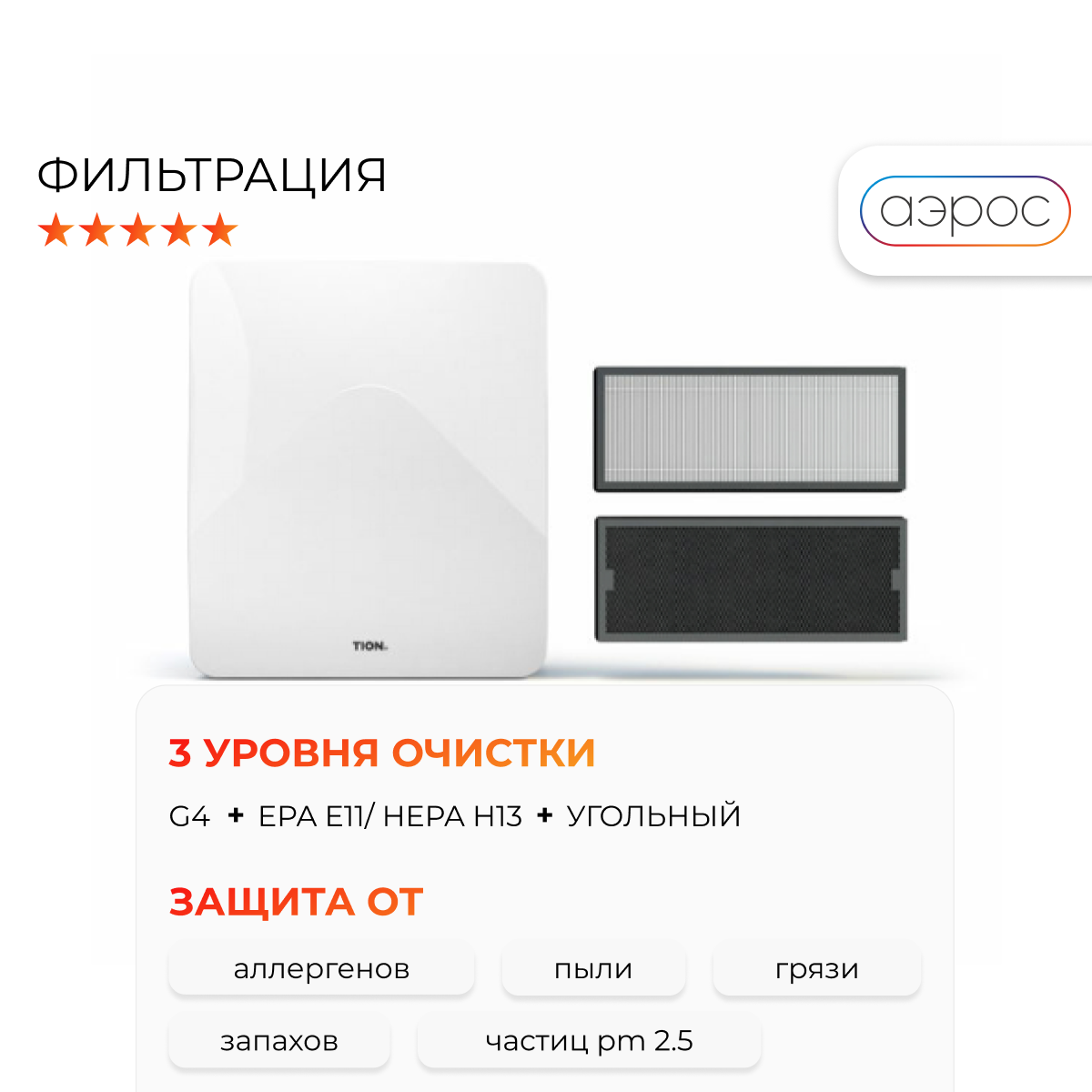 Приточный очиститель воздуха / Бризер Tion 4S Family + подарок фильтр F5