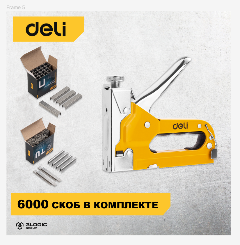 Cтроительный мебельный металлический степлер с регулировкой DELI DL238104 с набором скоб (скоб 140/53F П, U, T по 2000шт каждых)