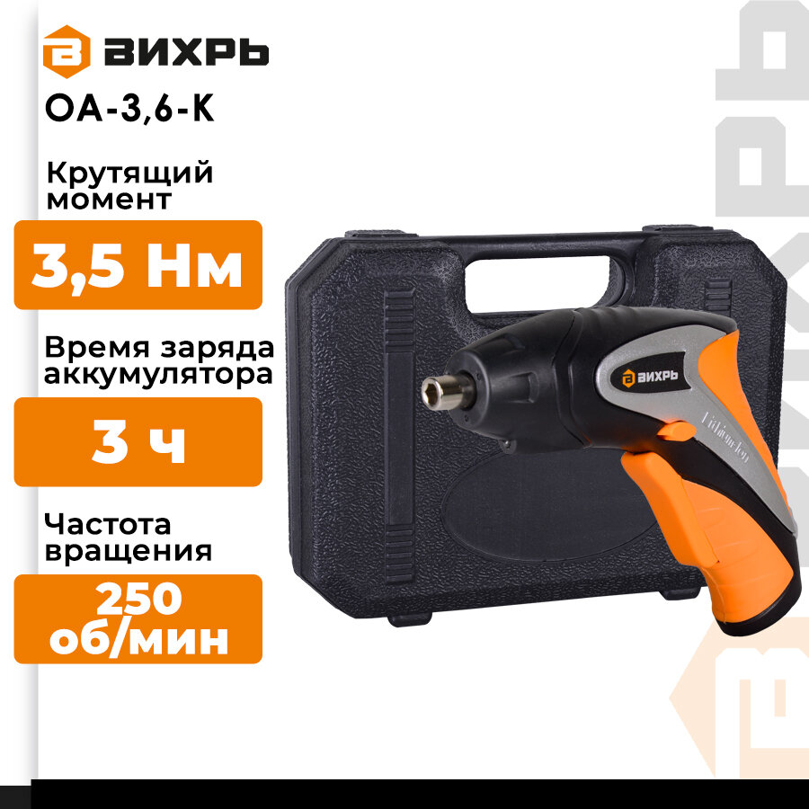 Отвертка аккумуляторная Вихрь ОА-3,6-К