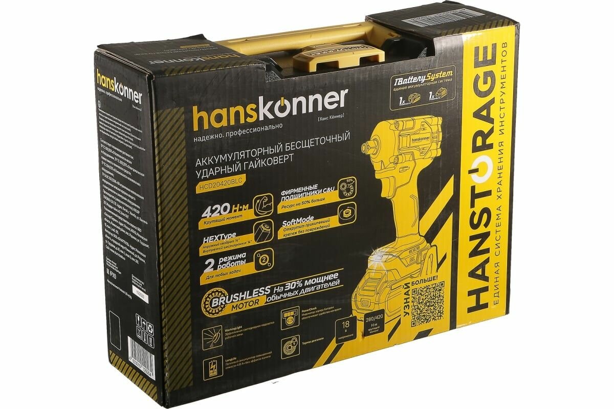 Купить Аккумуляторный ударный гайковерт Hanskonner Hcd20420blc (18В,1BatterySystem,420Нм,1/2", 2скор,1x4.0А
