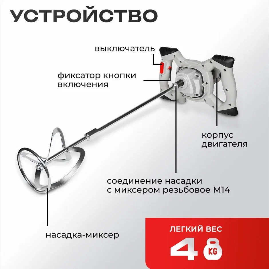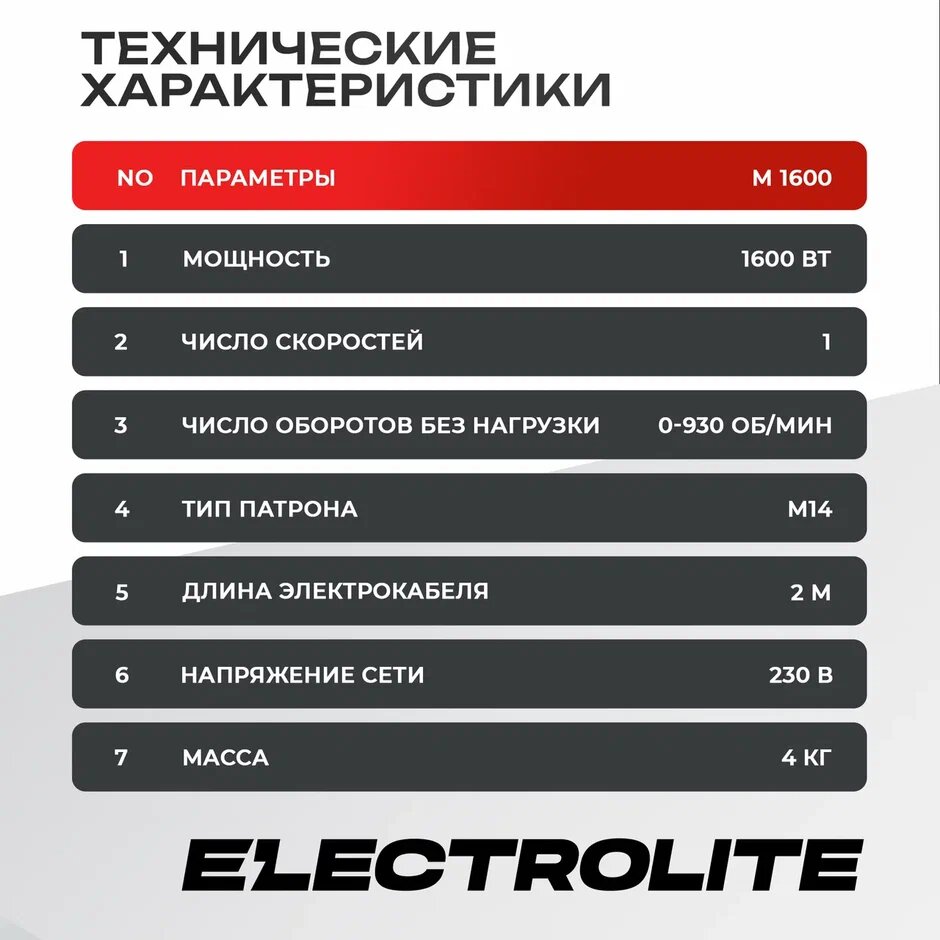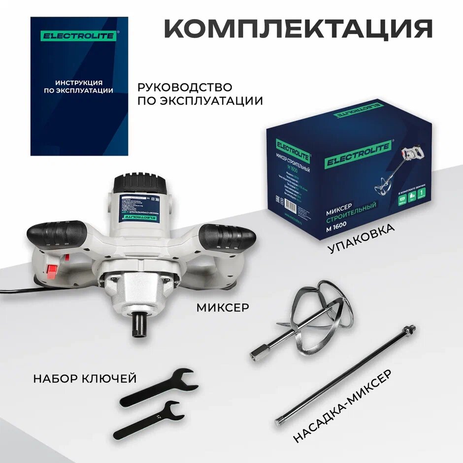 Миксер строительный Electrolite М-1600, 1,6 кВт, М14, 930 оборотов в минуту