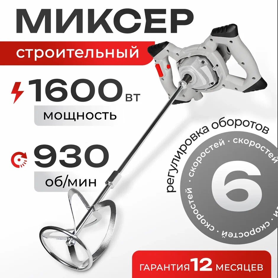 СохранитьМиксер строительный / Строительный миксер для смесей Electrolite М 1600El ( 1600Вт, 1 скорость, 1 венчик, медная обмотка ) интересное:
