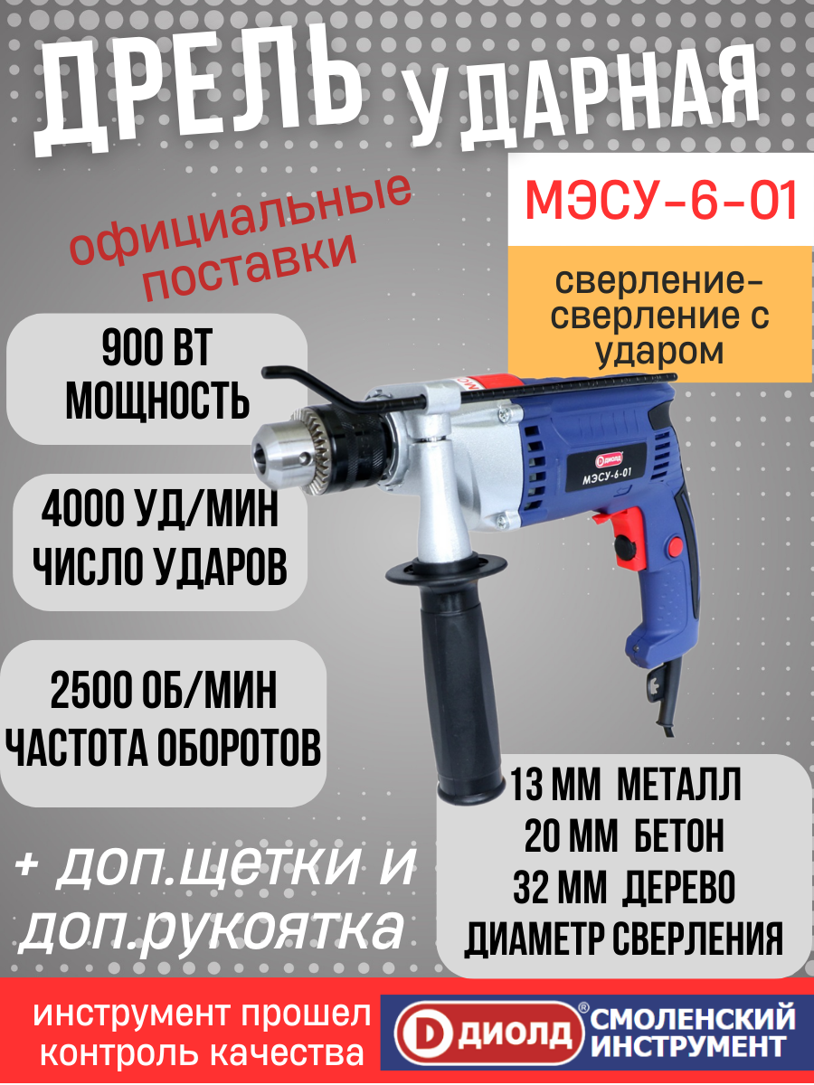Дрель ударная диолд МЭСУ-6-01, 900 Вт