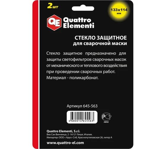 Стекло защитное для сварочной маски Quattro Elementi (645-563) 133х114 мм (2 шт.)