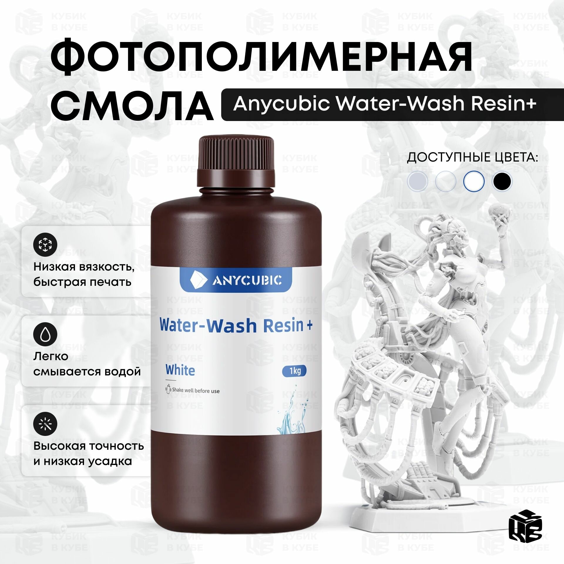Фотополимер Anycubic Water-Wash Resin+, белый (1 кг)