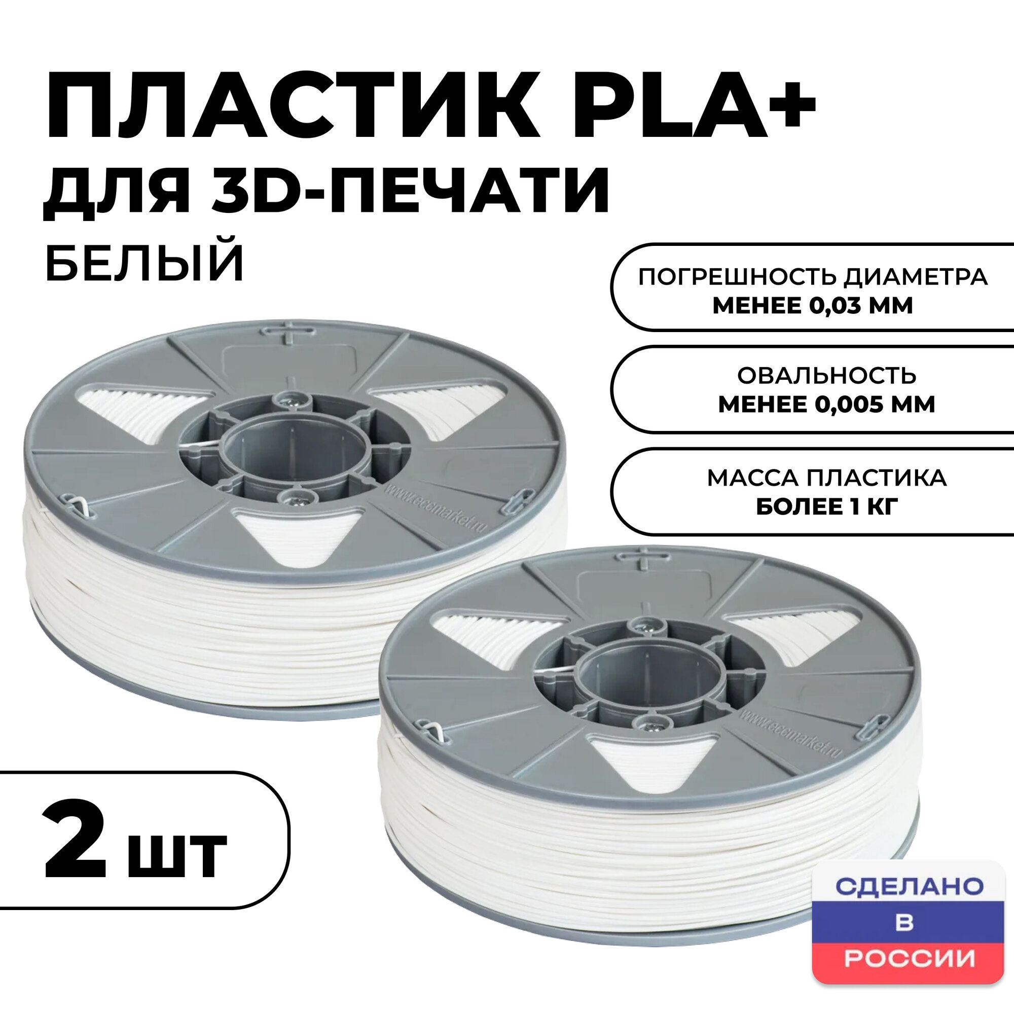 Пластик для 3D принтера Premium PLA (ПЛА) ИКЦ, премиум филамент для 3Д печати, 2 катушки, 1,75 мм, 2 кг, белый