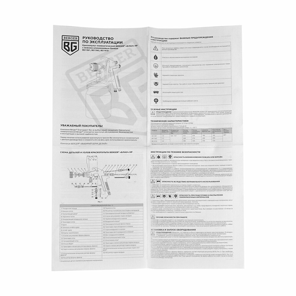 Краскопульт пневматический BERGER "блау" HP 1.4 мм нижний бачок BG1361 интересное: