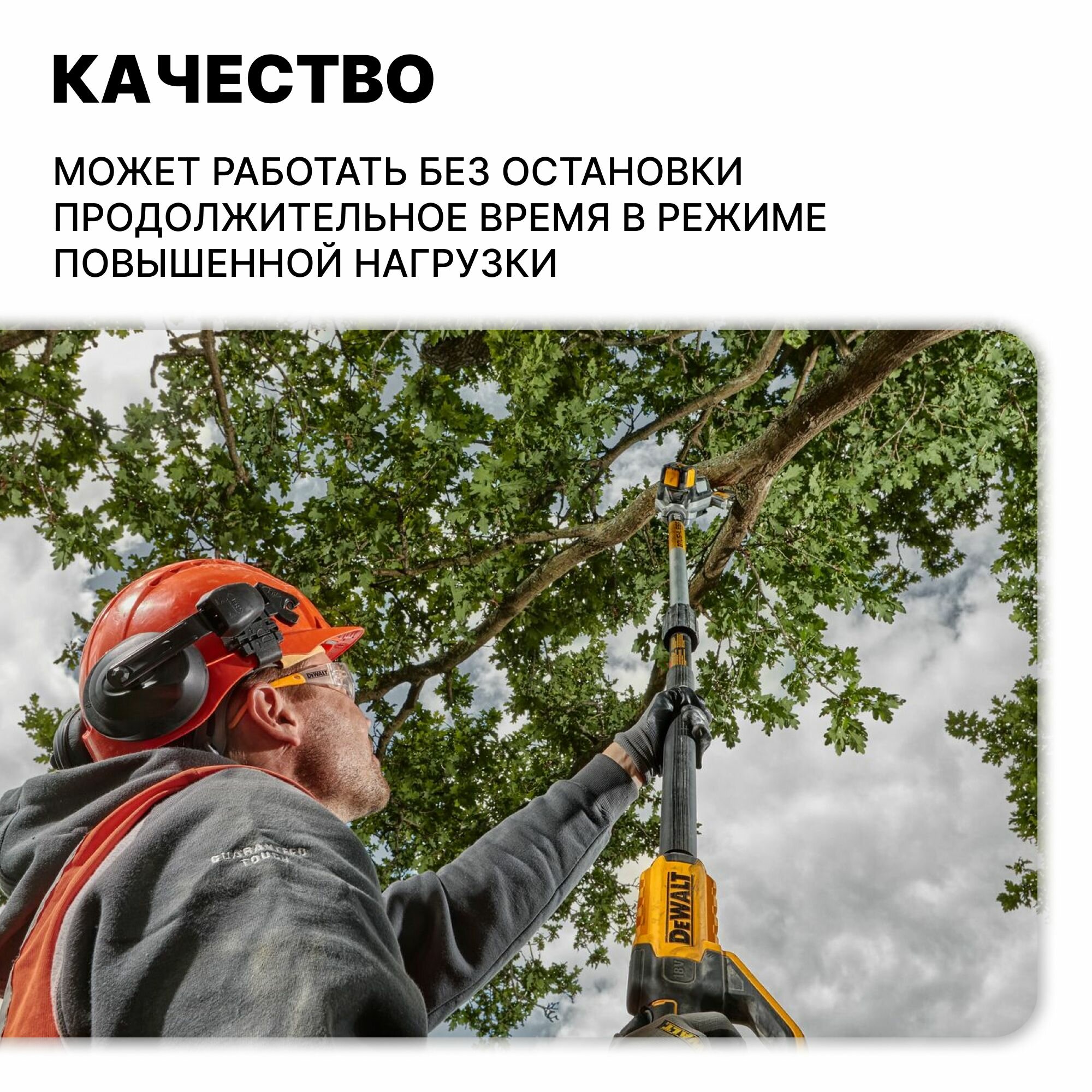 | Дополнительная информация | обеспечивает обрезку веток диаметром до 20 см на высоте до 4,5 метров; скорость движения цепи - 6,5 м/с; количество зубьев - 34 шт., совместим с аккумуляторными платформами DeWALT XR 18 Вольт и FLEXVOLT 54 Вольта; АКБ и ЗУ приобретаются отдельно |