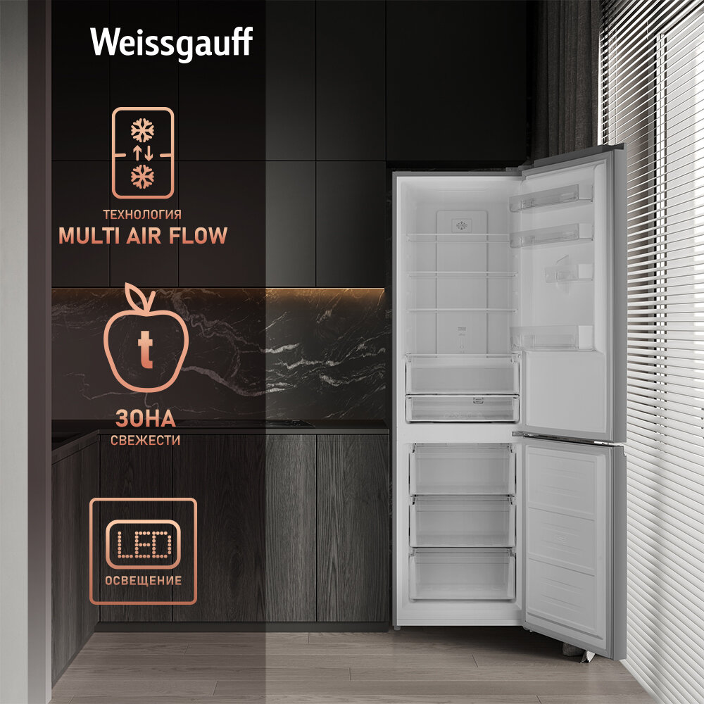 Купить Холодильник Weissgauff WRK 2000 WGNF DC Inverter 3 года гарантии, технология Multi Air Flow, класс энергопотребления А++, LED-освещение