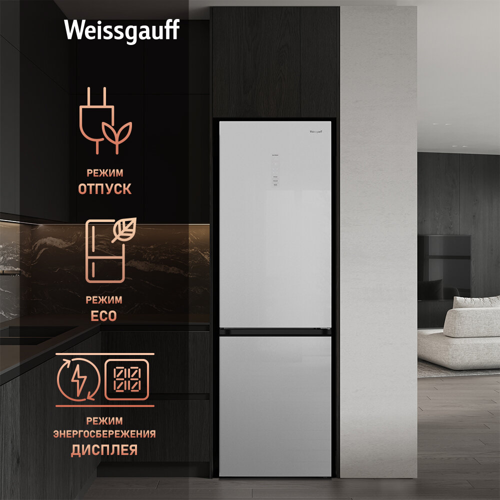 Холодильник Weissgauff WRK 2000 WGNF DC Inverter белое стекло (двухкамерный)