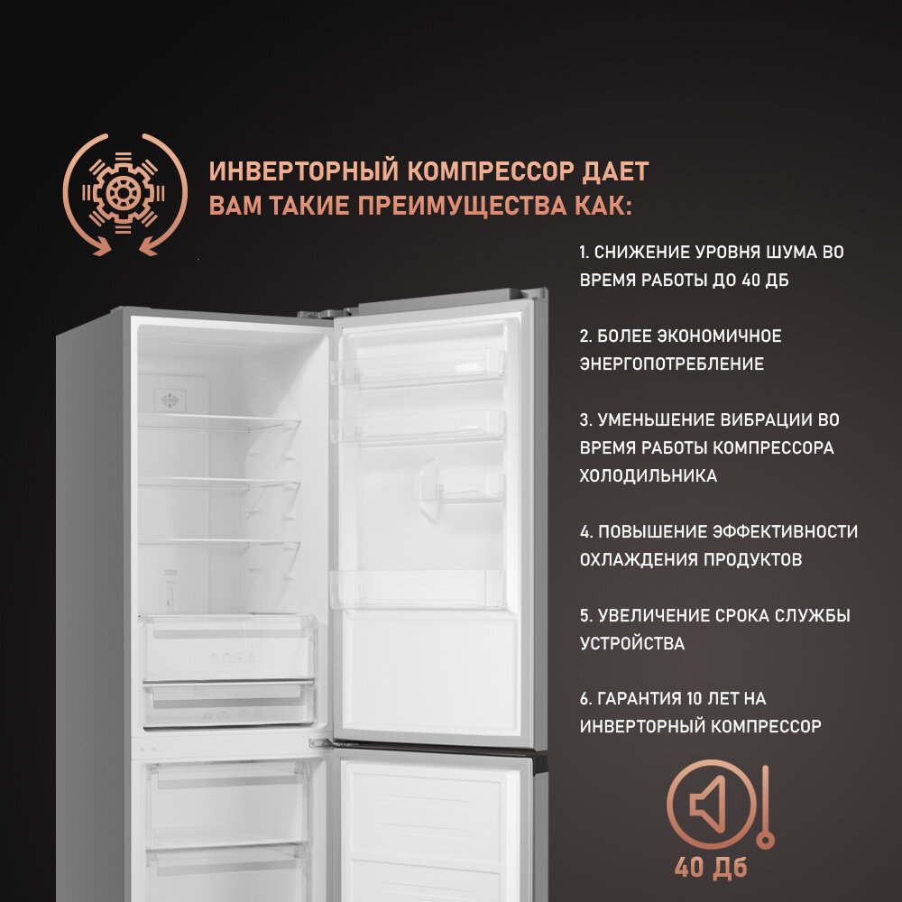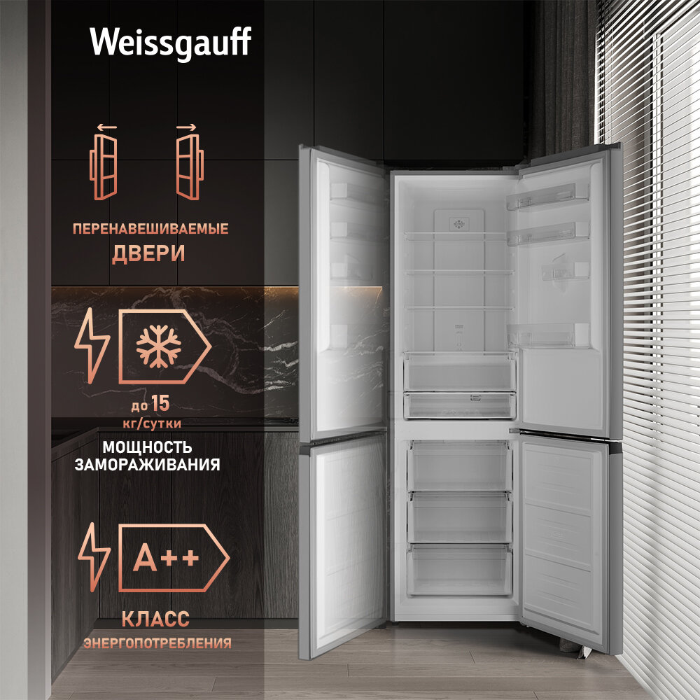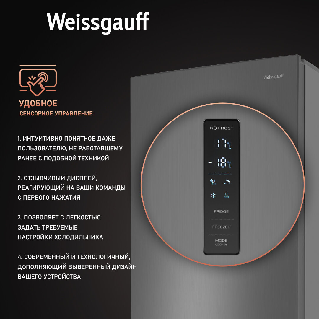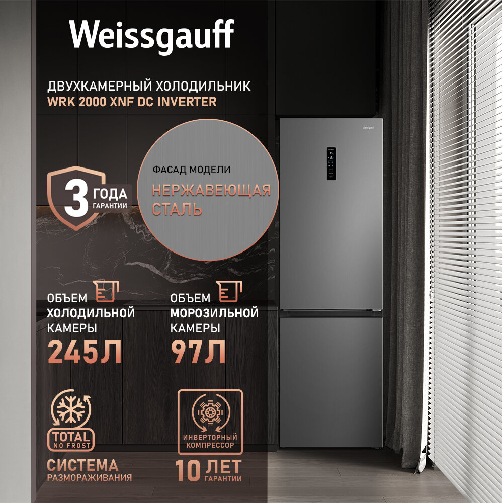 Отдельностоящий холодильник с инвертором Weissgauff WRK 2000 XNF DC Inverter 3 года гарантии, Суперзаморозка, Размораживание full no frost, А++, Технология Multi Air Flow интересное: