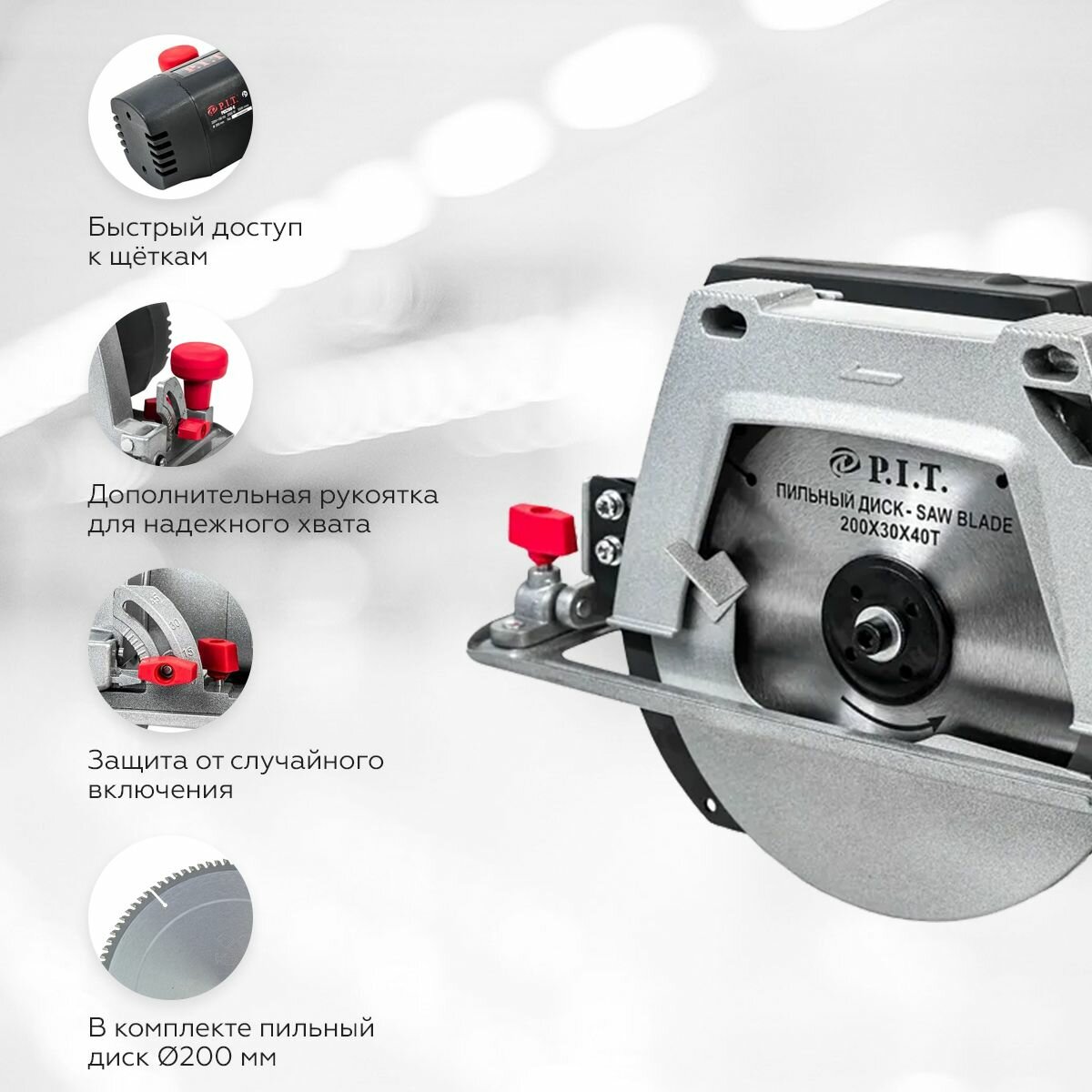 Пила циркулярная P.I.T.РКS200-С (2000 Вт, 200 диск, 5500 об/мин, глубина пропила 65 мм)