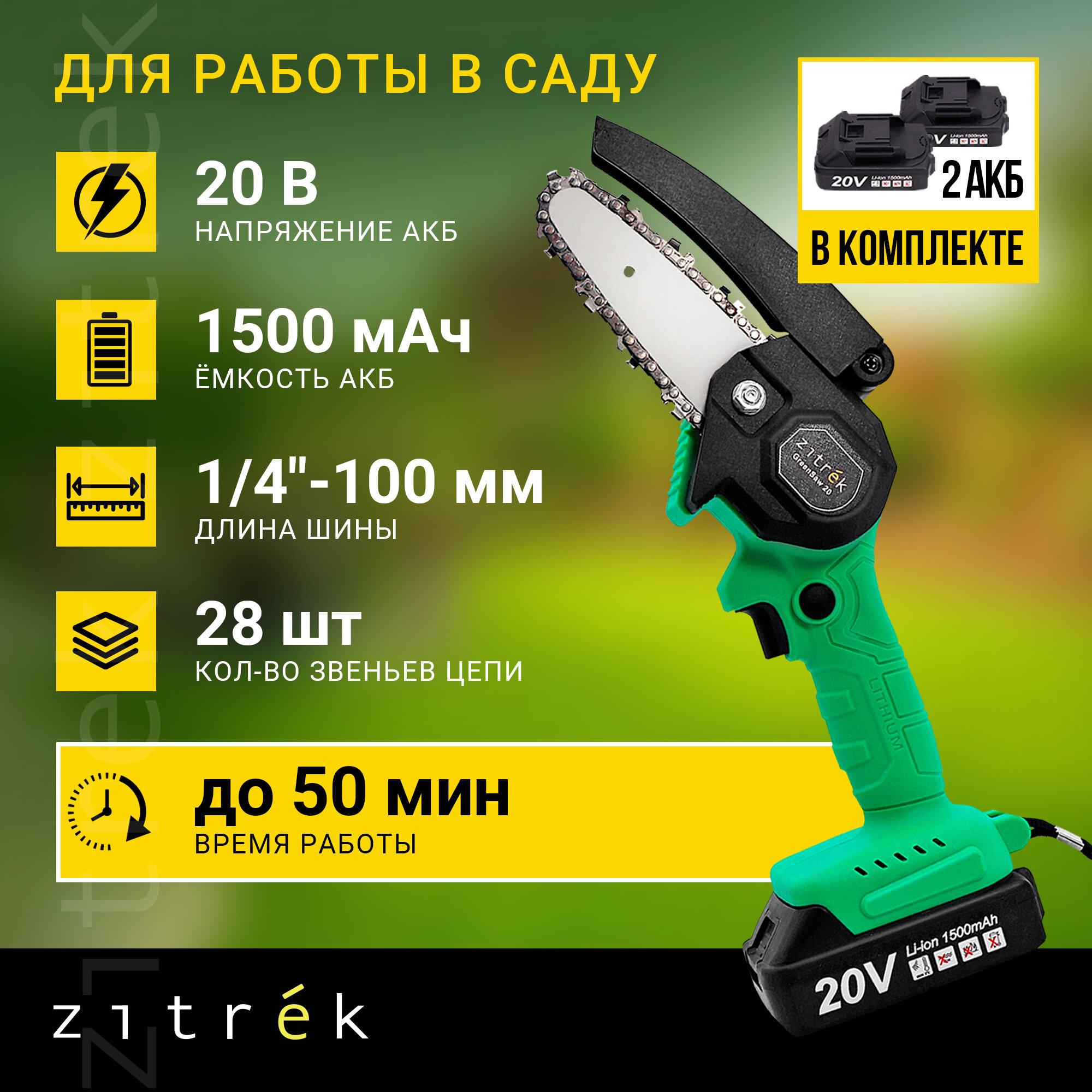 ZITREK Пила цепная аккумуляторная GreenSaw 20