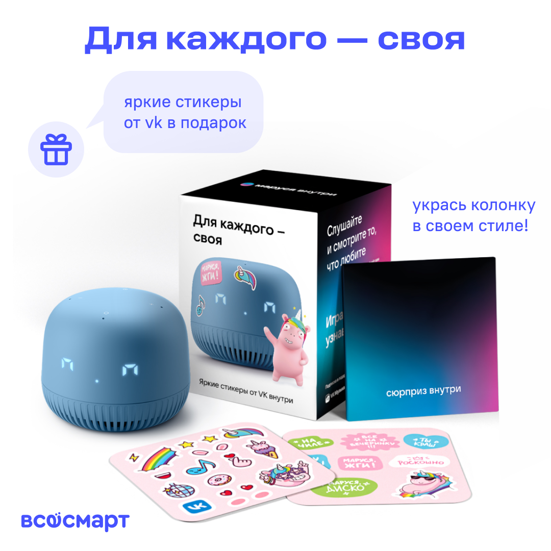 Умная колонка Маруся мини, VK Капсула Нео (с часами) и наклейками цвет синий, 3 месяца музыки VK + Wink в подарок