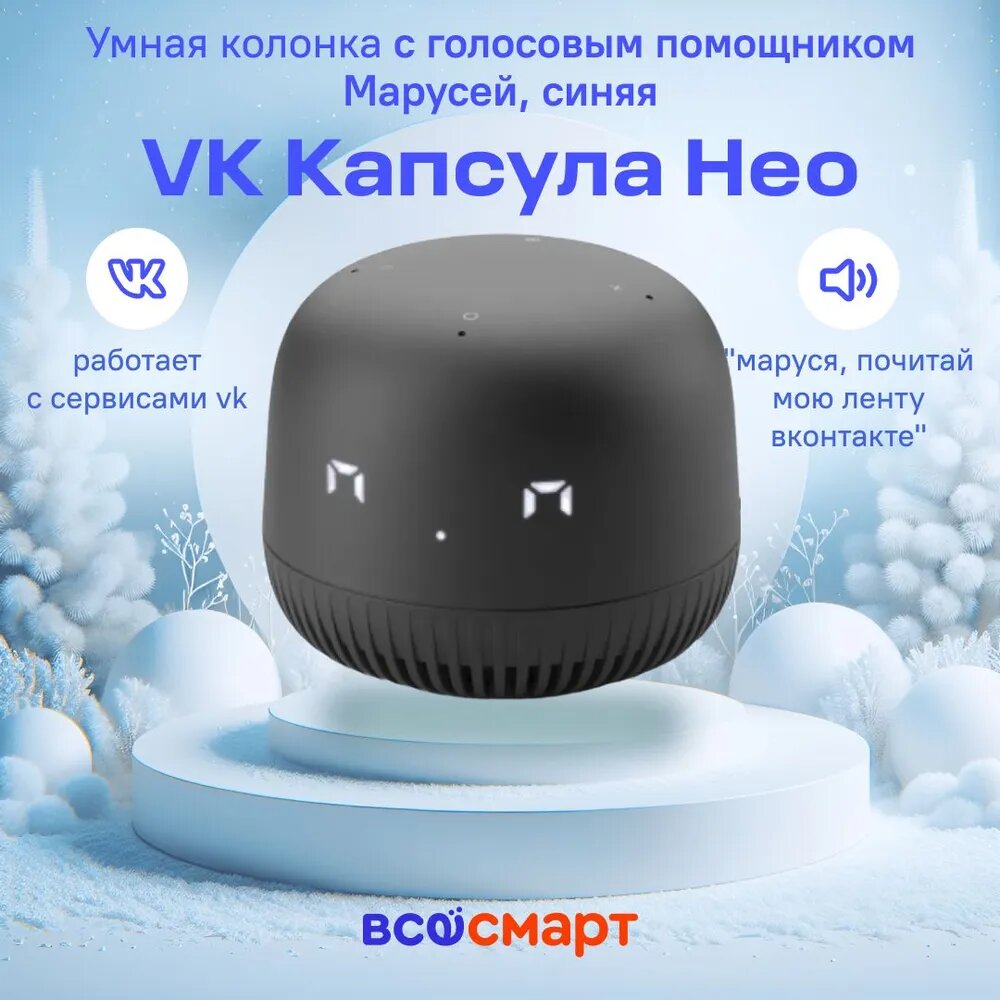 Умная колонка Маруся, VK Капсула Нео с голосовым помощником, умная станция, цвет синий, 3 месяца подписки VK + Wink в подарок