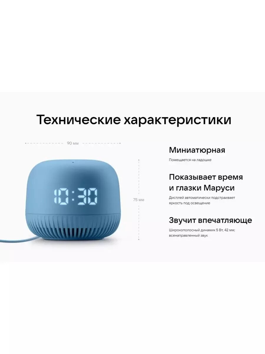 Умная колонка Маруся мини, VK Капсула Нео (с часами) и наклейками цвет синий, 3 месяца музыки VK + Wink в подарок