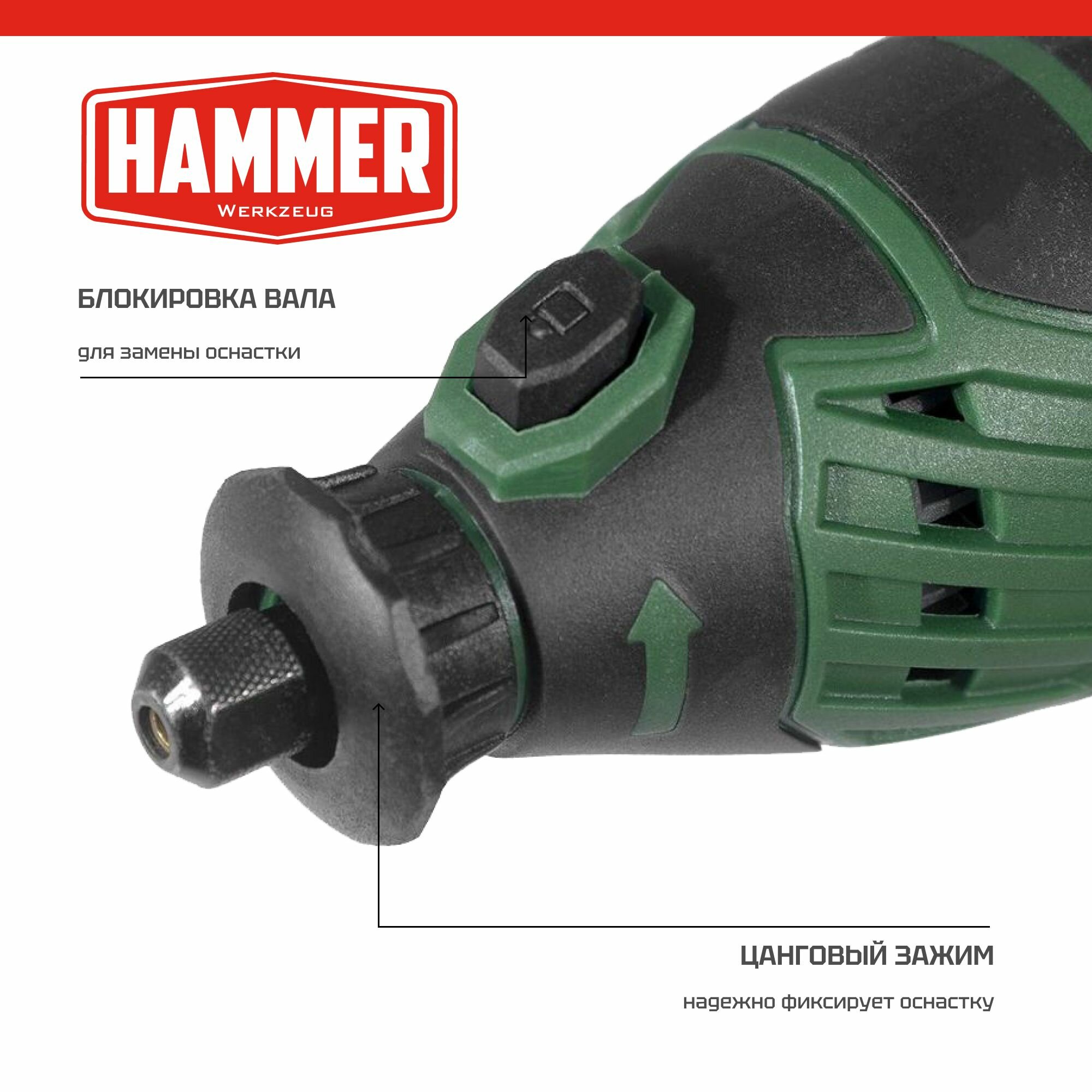 Гравер сетевой Hammer Flex MD135A 135Вт, гибкий вал 2.4-3.2мм 10000-32000 об/мин кейс + насадки 41шт.
