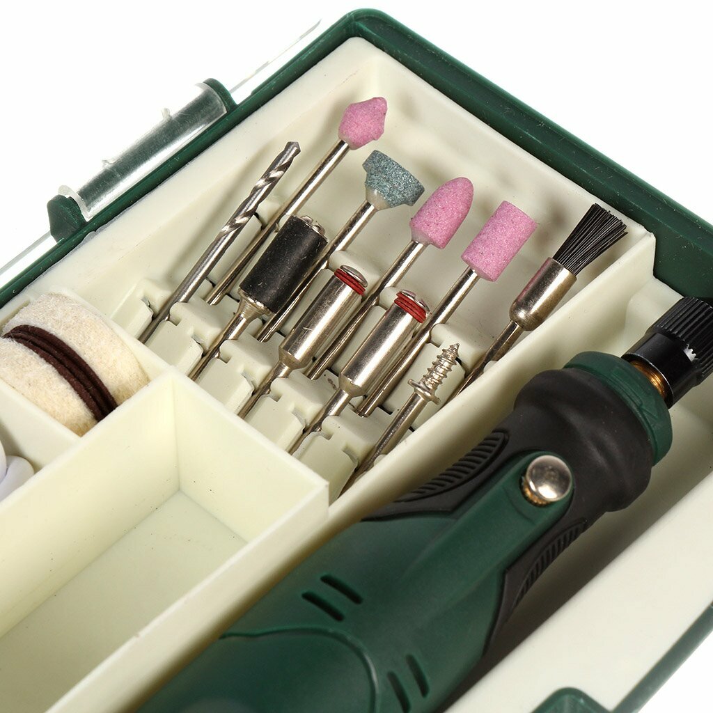 | Комплектация | гравер, гибкий вал, 210 насадок, ключ, кейс |