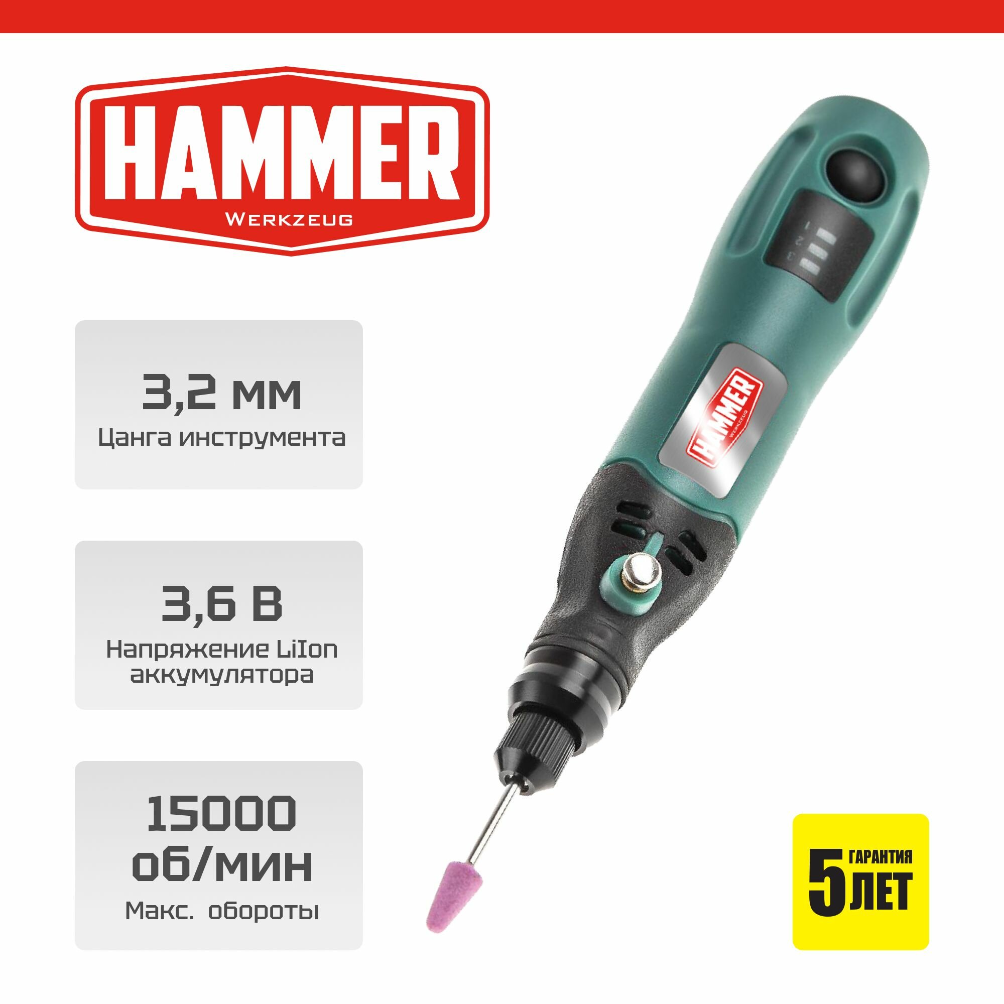 Гравер / гравер аккумуляторный + 4 насадки HAMMER AMD3.6Li