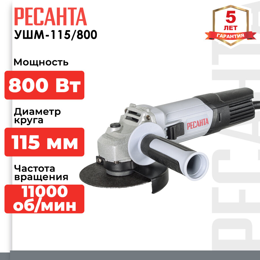 Угловая шлифмашина Ресанта УШМ-115/800, 800 Вт, D 115 мм
