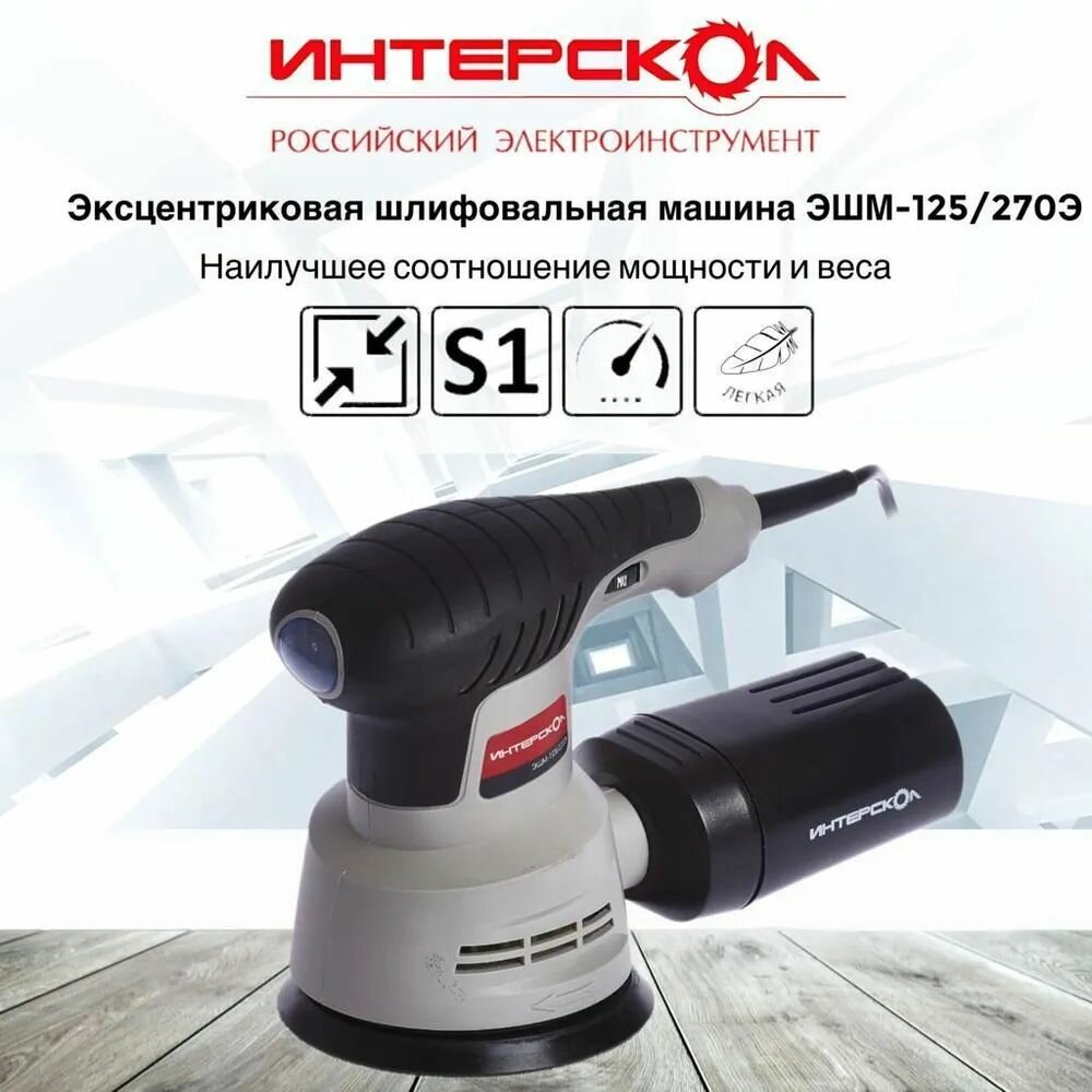 ИНТЕРСКОЛ ЭШМ-125/270Э шлифмашина эксцентриковая 125мм 270Вт / ИНТЕРСКОЛ ЭШМ-125/270Э шлифовальная машина эксцентриковая орбитальная 125мм 270Вт