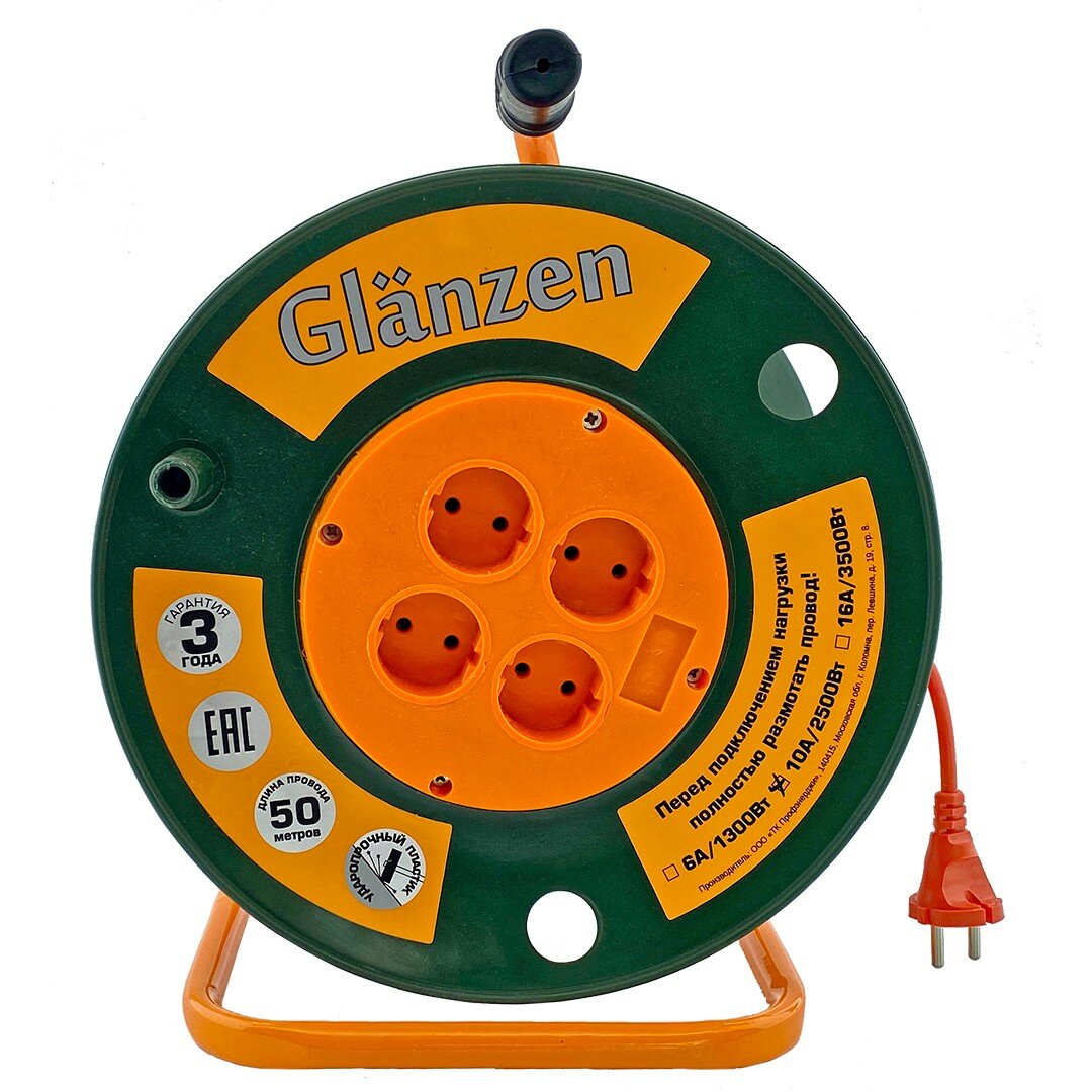 Купить Удлинитель силовой на катушке GLANZEN 4 гн. ПВС 2х1 ЕВ-50-003