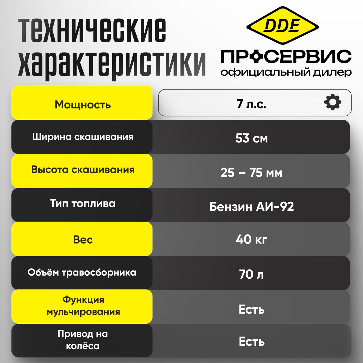 Бензиновая газонокосилка DDE 791-936 LM 53-70 D 7,0 л.с.; 53 см; выс 25-70 мм; травосб 70 л интересное: