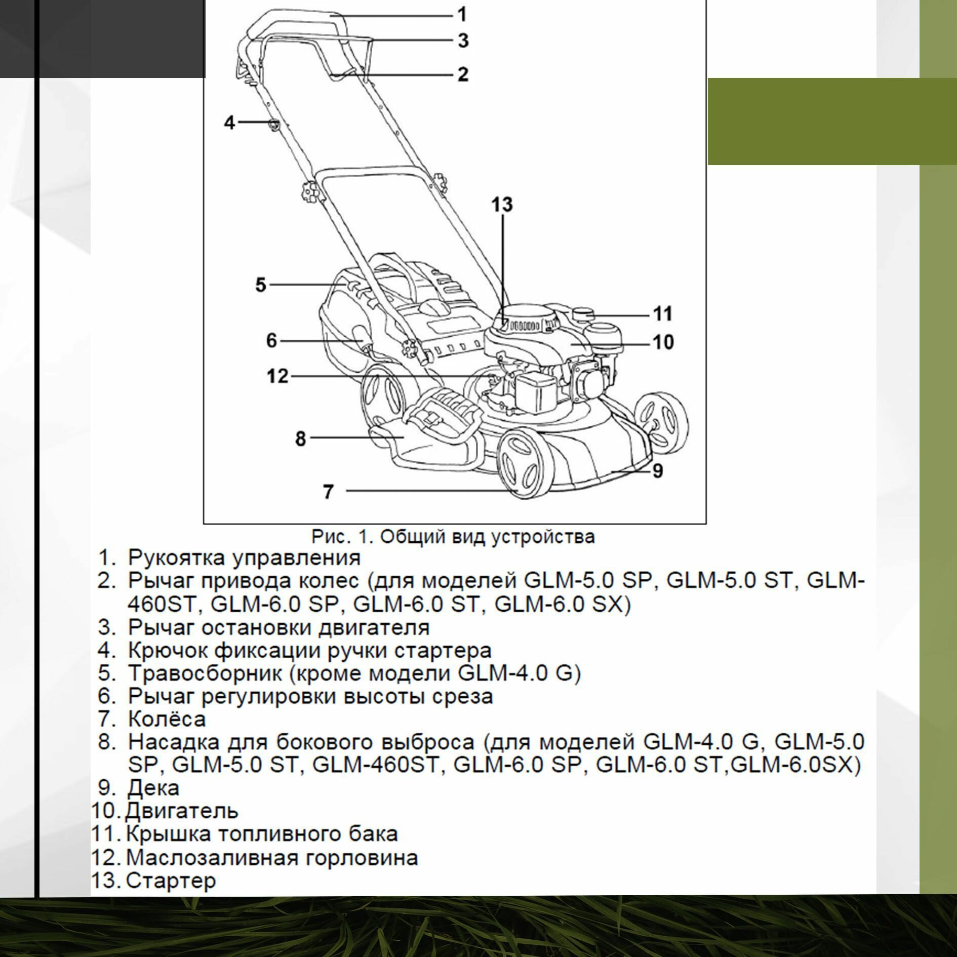 Ухаживаем за газоном. Заводится вручную стартером. Колеса большого диаметра, газон не портят. Скашивает только траву, кустарников у нас нет. Перемещается легко, трава не мнется. Травосборник из ткани, легко снимается и устанавливается. Для высоты среза семь уровней.