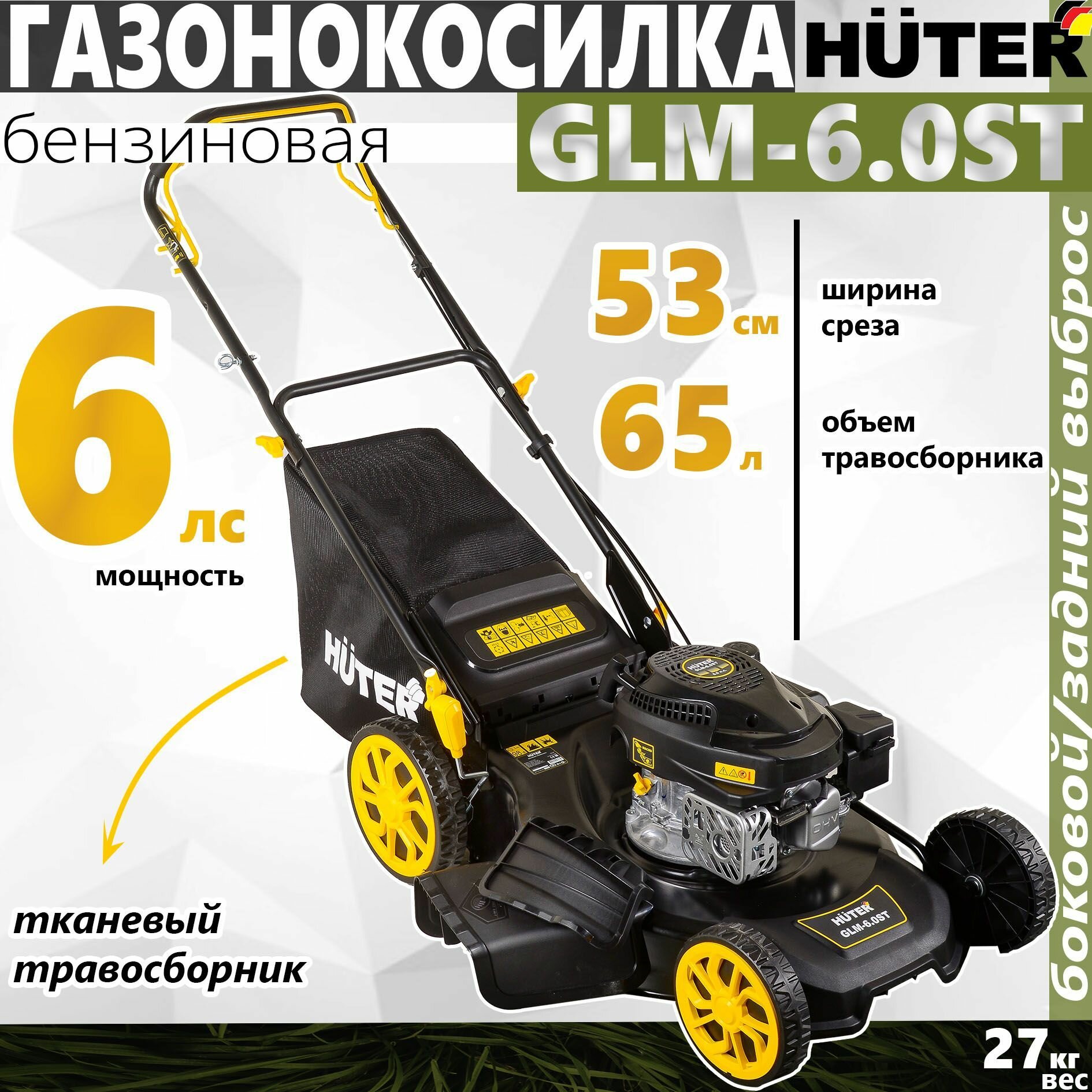 Ниже Вы можете прочитать отзывы на Газонокосилка бензиновая GLM-6.0 ST Huter (6 л.с., 2800-3200 об/мин, 65 л, мульчирование, от 25 мм до 75 мм, ширина - 530 мм, самоходная), ознакомится с подробными характеристиками, посмотреть интересные обзоры и фотографии на Газонокосилка бензиновая GLM-6.0 ST Huter (6 л.с., 2800-3200 об/мин, 65 л, мульчирование, от 25 мм до 75 мм, ширина - 530 мм, самоходная).