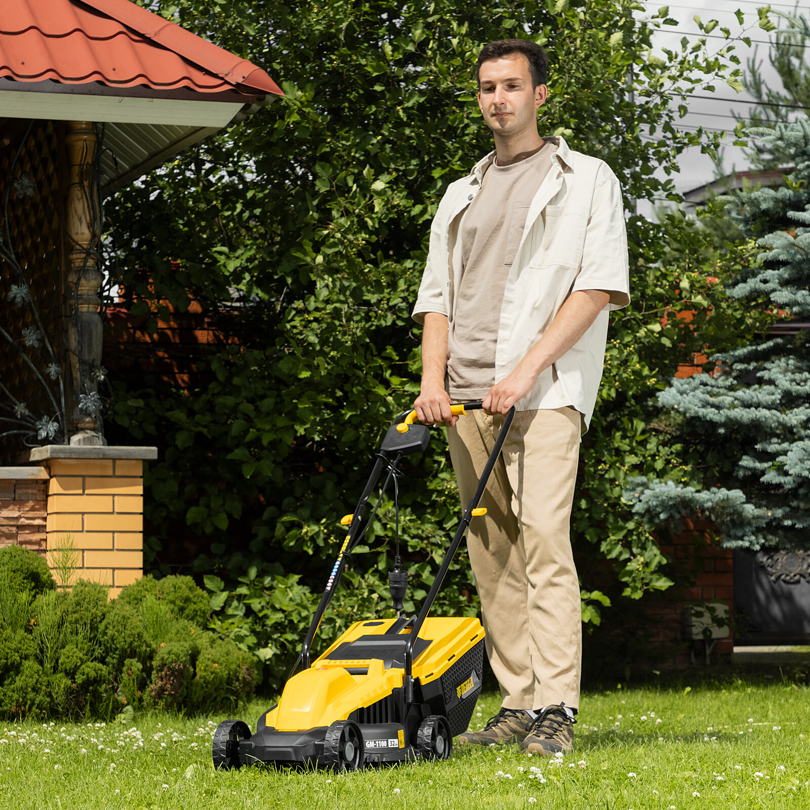 | Отзыв: | Можно использовать на ухоженном газоне. На траве высотой 15см. еле тянет. |
