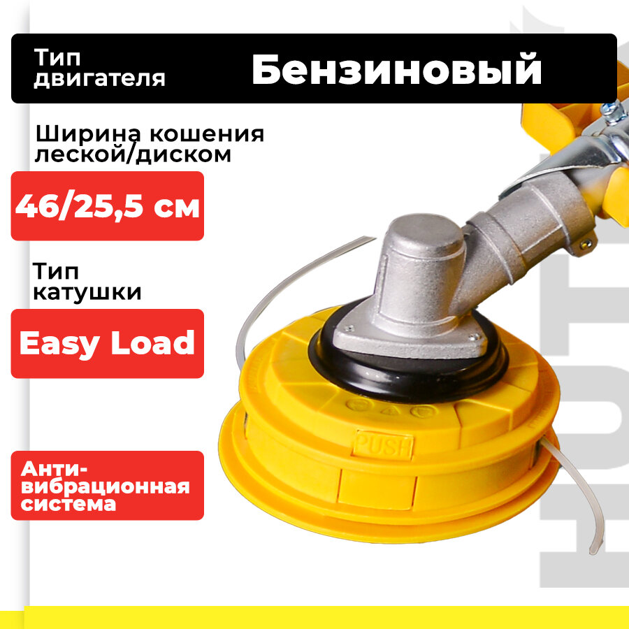 Бензиновый триммер / мотокоса GGT-2900S PRO (с антивибрационной системой) Huter (2900 Вт, 9500±500 об/мин, леска 460 мм, нож 255 мм, антивибрационная система PRO, очки, разъемная штанга) интересное: