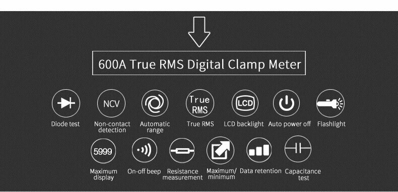 | Дополнительная информация | Тип: токоизмерительные клещи. Переменный ток (A): 600 A ± (2,5% + 5). Частотная характеристика переменного тока: 40 ~ 400 Гц. Постоянный ток (A): 600 A ± (2,5% + 5). Напряжение переменного тока (В): 750 В ± (1,2% + 5). Частотная характеристика переменного напряжения: 40 ~ 400 Гц. Напряжение постоянного тока (В): 1000 В ± (0,8% + 1). Сопротивление (Ом): 60 МОм ± (1% + 2). Емкость (F): 60 мФ ± (4% + 5). Частота (Гц): 10 Гц ~ 1 МГц ± (0,1% + 4). Температура: ?40 ° C ~ 1000 ° C ± (2% + 5) / ?40 ° F ~ 1832 ° F ± (2% + 10). Количество знаков дисплея: 6000. Автоматический диапазон: да. Открытие челюсти: 30 мм. Истинное среднеквадратичное значение: да. Диод: около 3 В. V. F. C.: да. NCV: да. Удержание данных: да. Относительный режим: да.МАКС / МИН: да. Подсветка ЖК-дисплея: есть. Пусковой ток: да. Аналоговая гистограмма: 61. Фонарик: да. Автоотключение: да. Зуммер непрерывности: да. Индикация низкого заряда батареи: =10 МОм. Питание: батарея 1.5 В (R03) x 3. Дисплей: 38x24 мм. Размер: 220x75x40 мм. Вес: 231.7 г. |