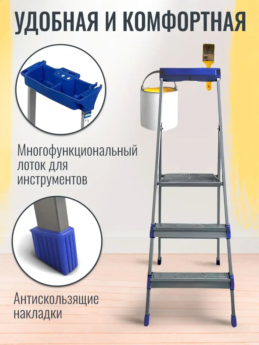 Стремянка Nika СП3, высота до рабочей площадки 625 мм, 3 ступени Nika .