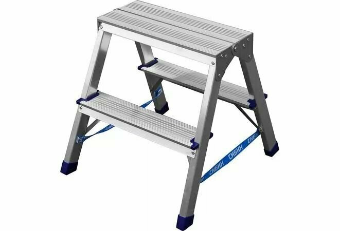 Купить Лестница-стремянка двухсторонняя 38825-02, число ступеней 2, алюминий, максимальная нагрузка 150 кг СИБИН
