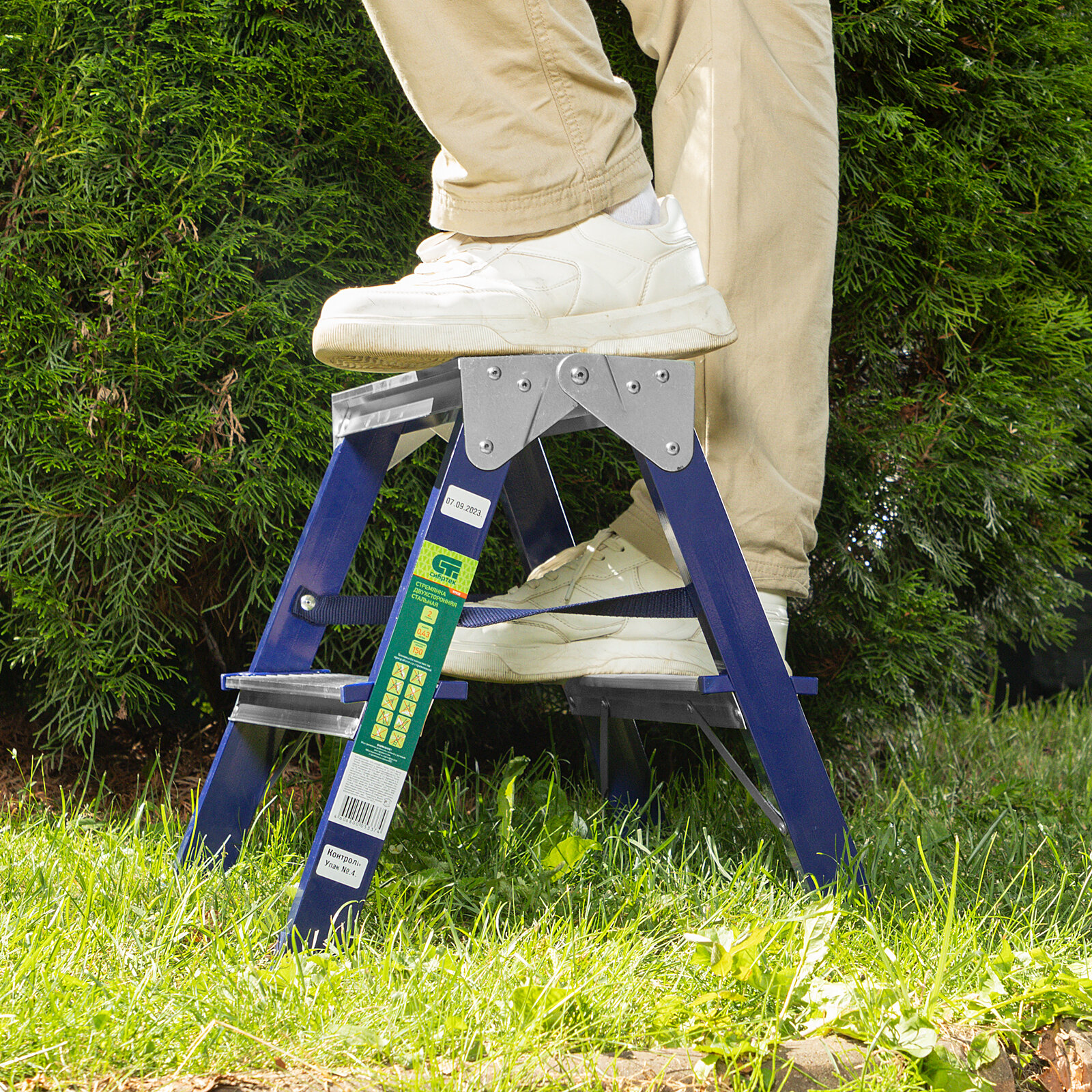 Стремянка двусторонняя 2 ступени, стальная, Россия, Сибртех