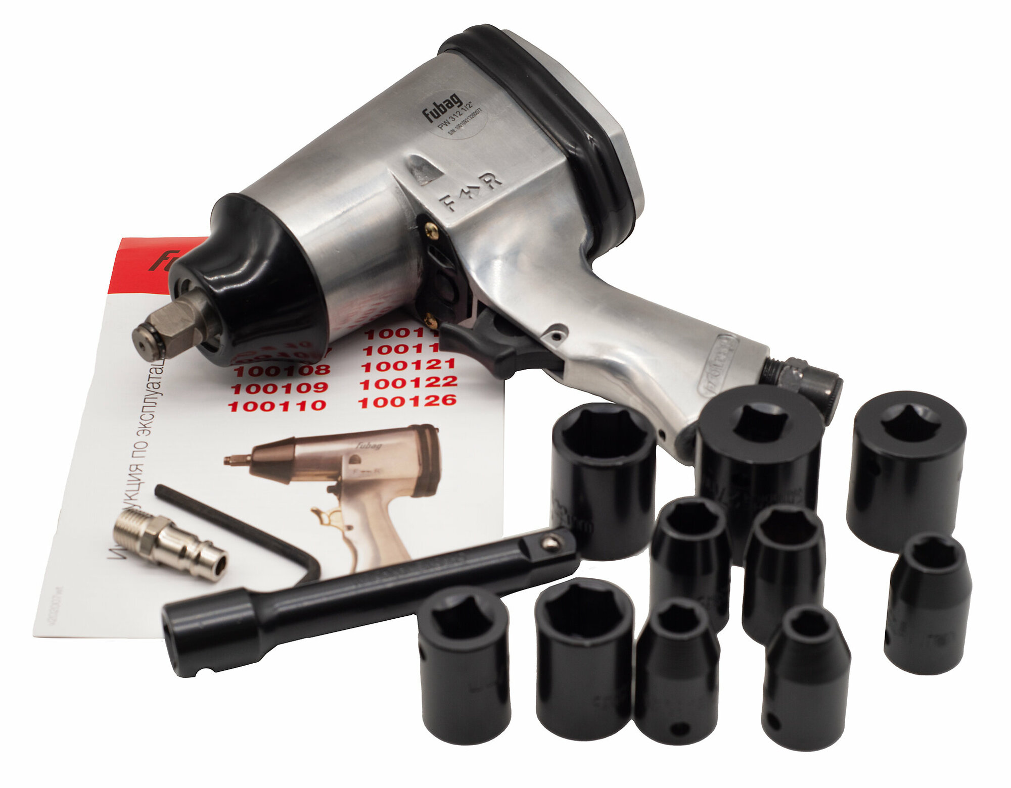 Пневмогайковерт PW312 (158л/мин_312н/м_6.3бар_1/2") + удлинитель + 10гол. FUBAG